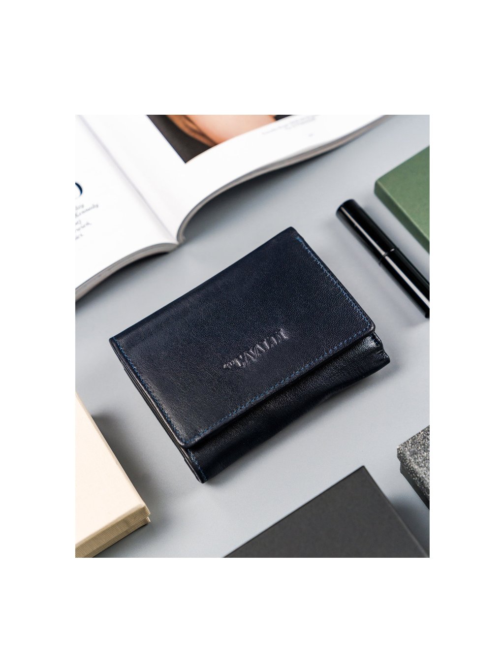 4U Cavaldi tmavě modrá malá peněženka z přírodní kůže M793