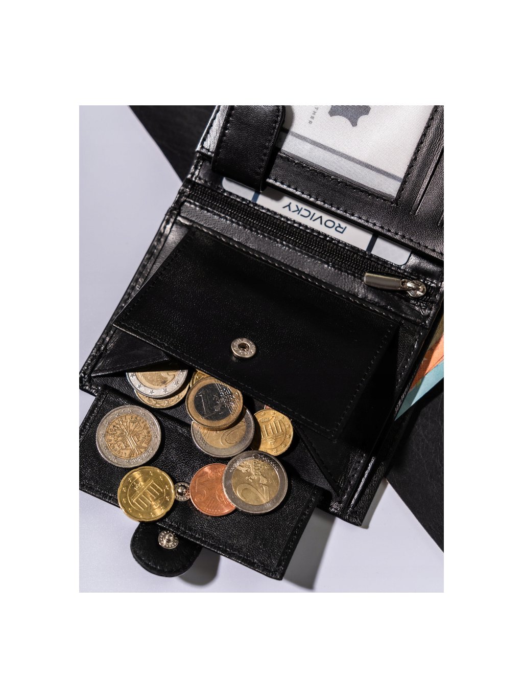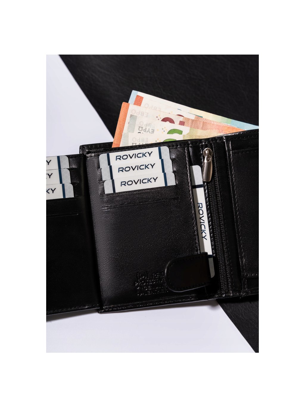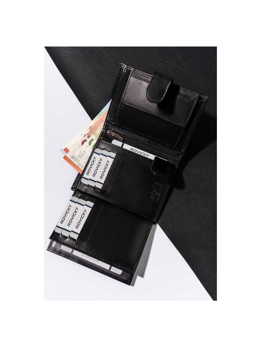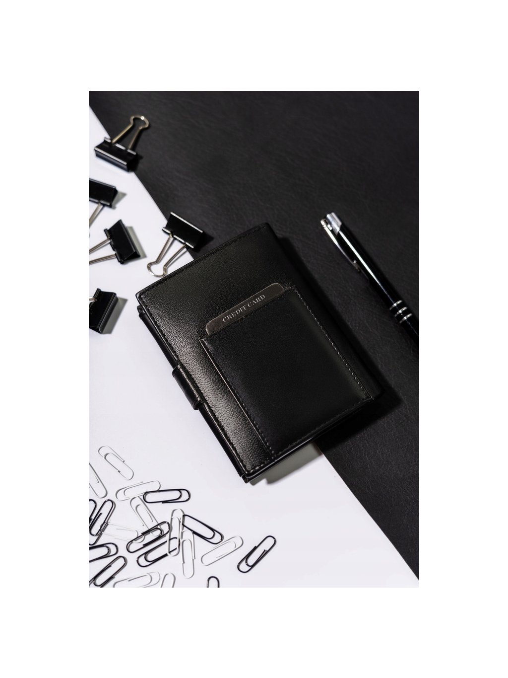 - 11 přihrádek na platební karty, vizitky a dokumenty standardní velikosti, z toho 1 ve formě okénka a 1 vnější