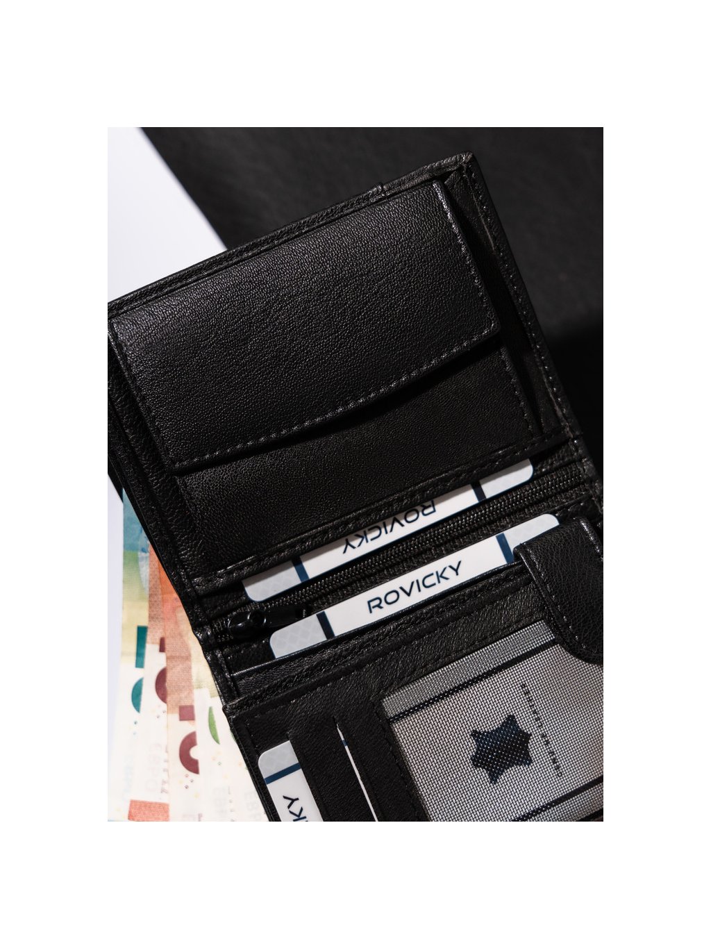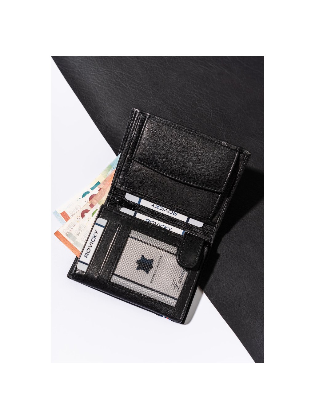 - RFID ochrana, která chrání peněženku proti čtečce karet