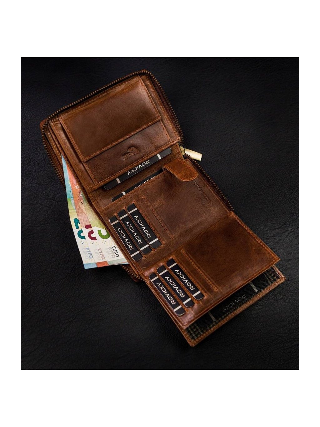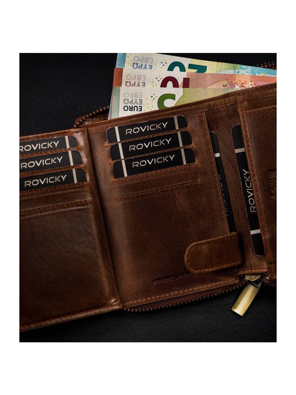 - uvnitř je 10 míst na karty, 4 místa na větší doklady, kapsa na mince na patent, 2 přihrádky na bankovky