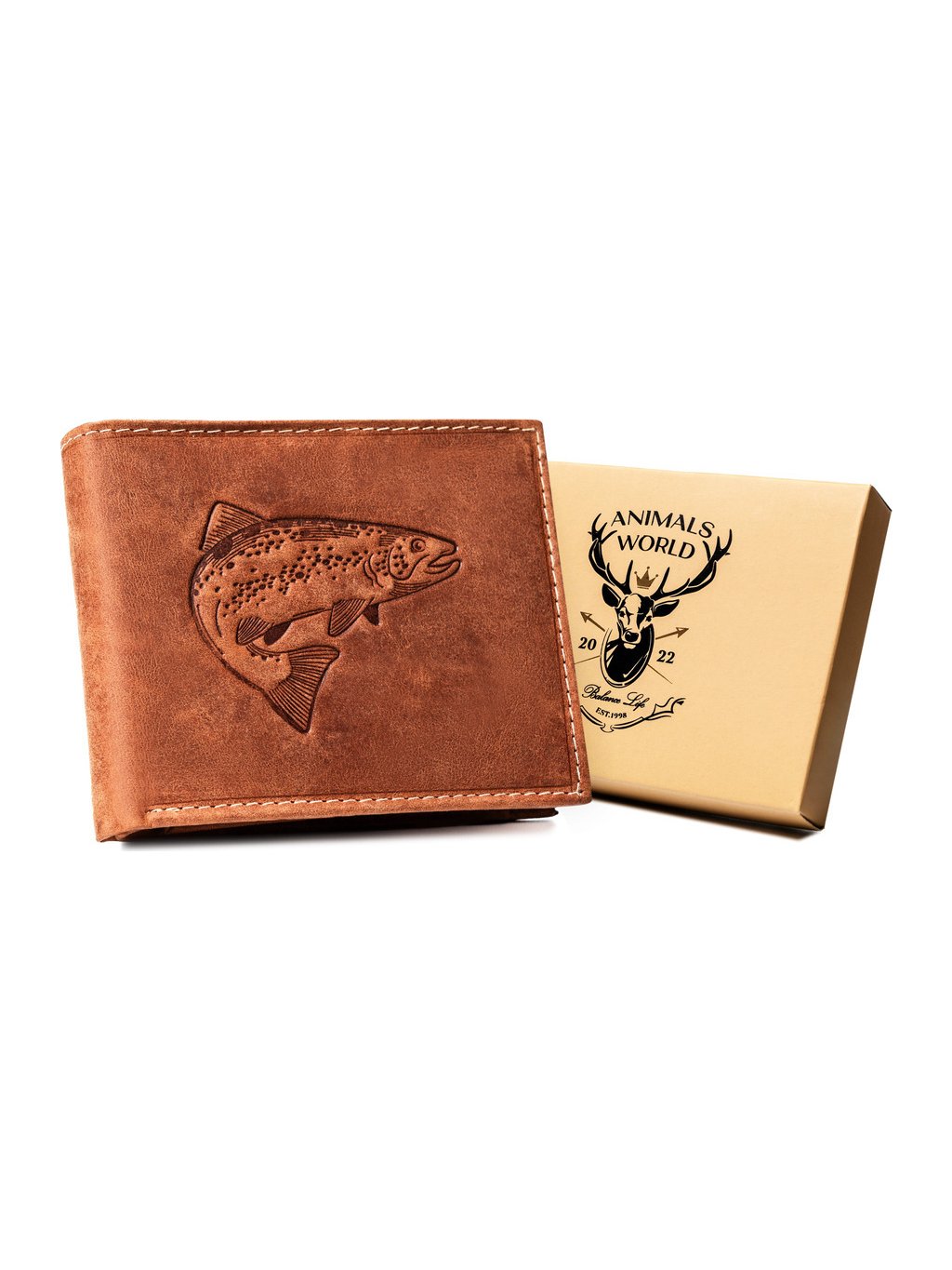 Always Wild Světlě hnědá kožená peněženka s ražbou ryby A167