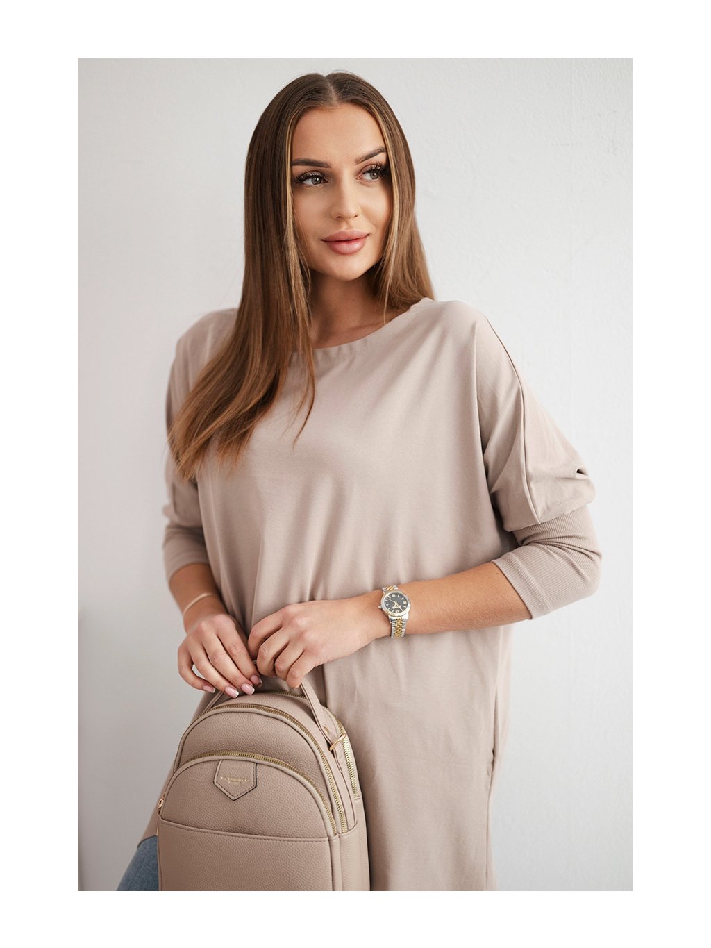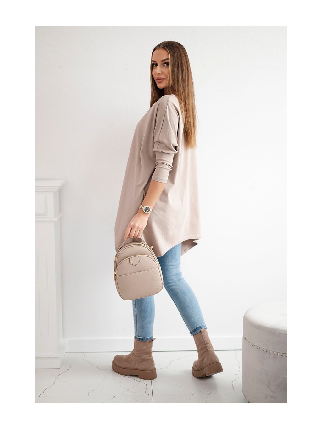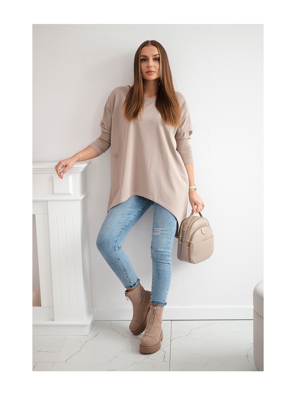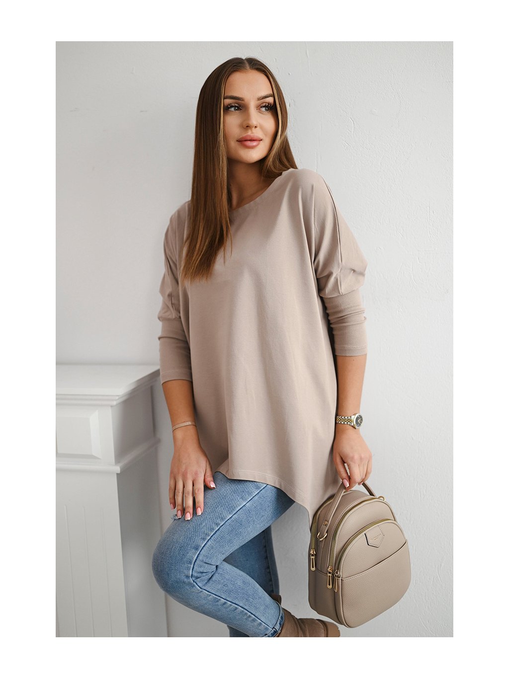 Béžová asymetrická oversize halenka