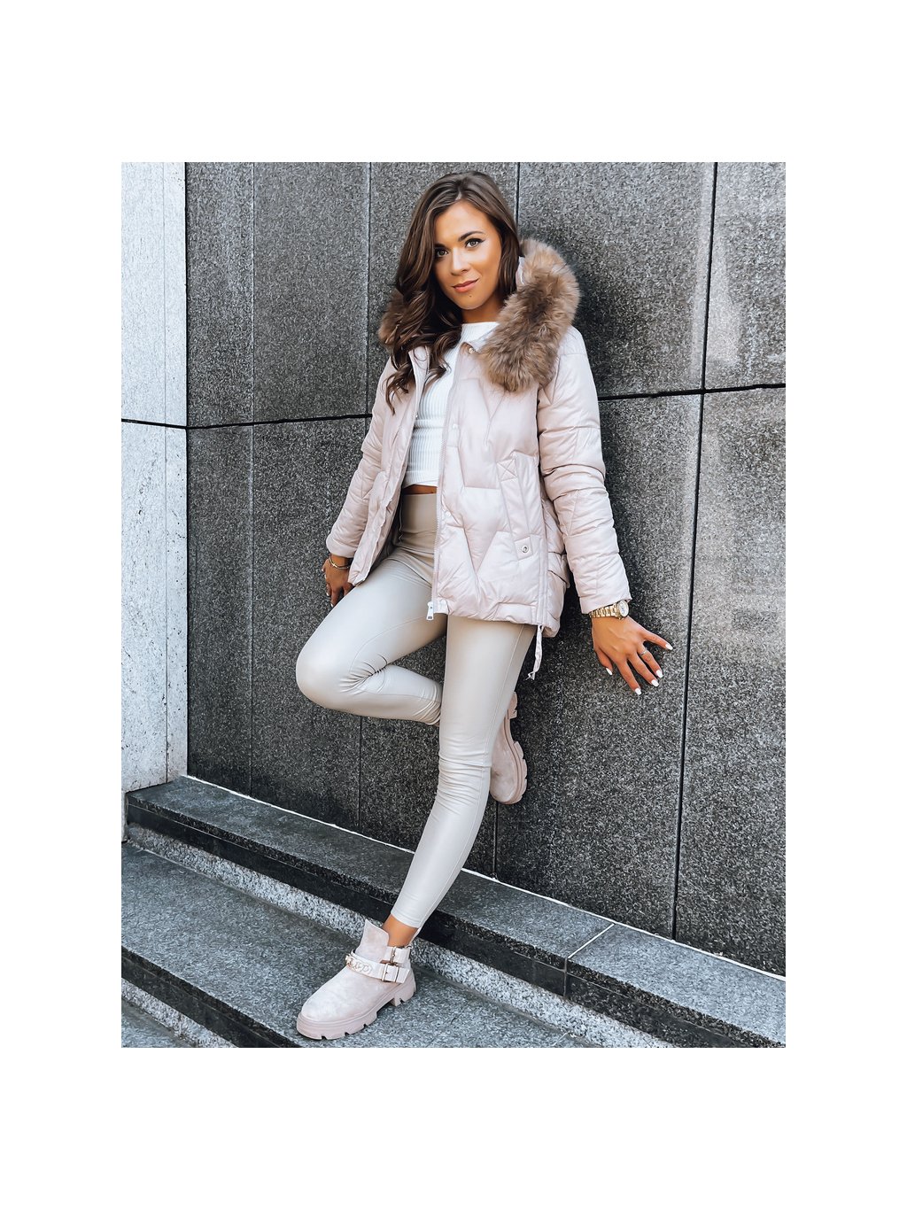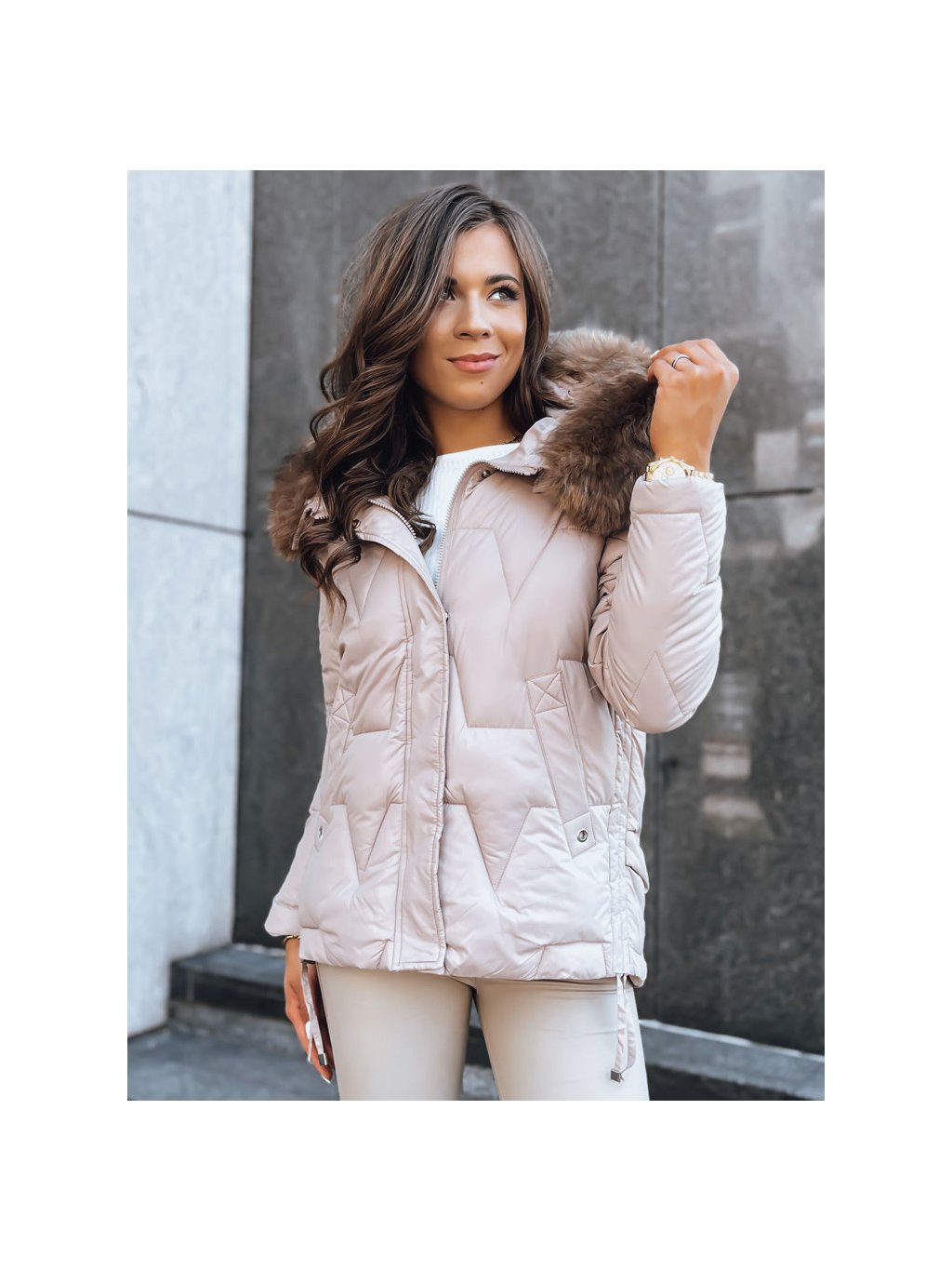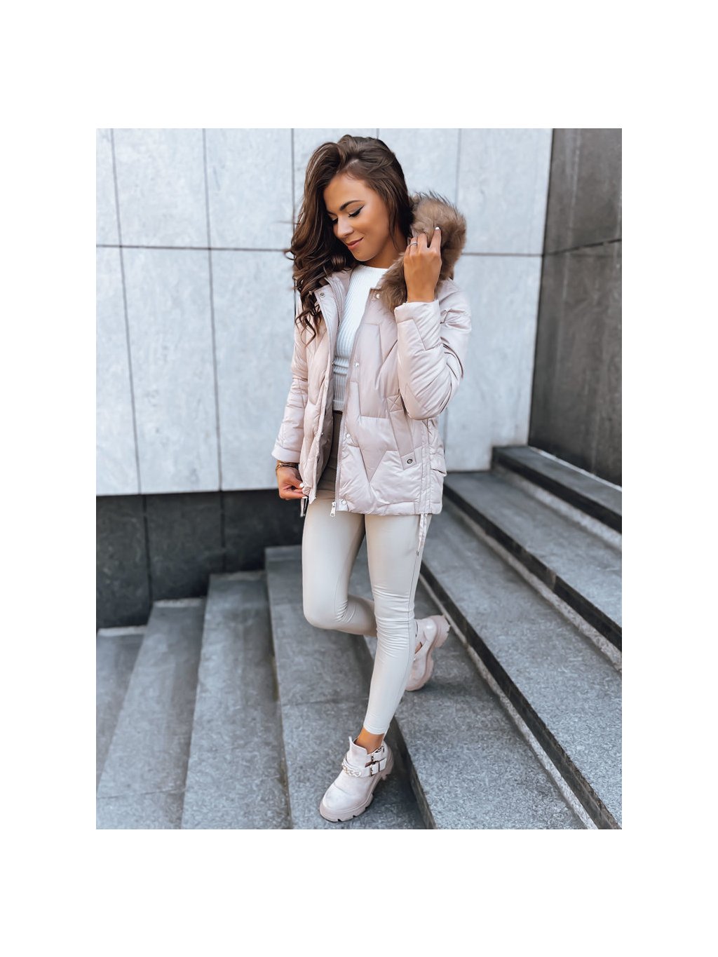 Béžová bunda asymetrického střihu IVORY SNOW