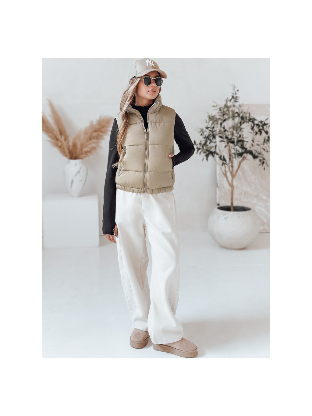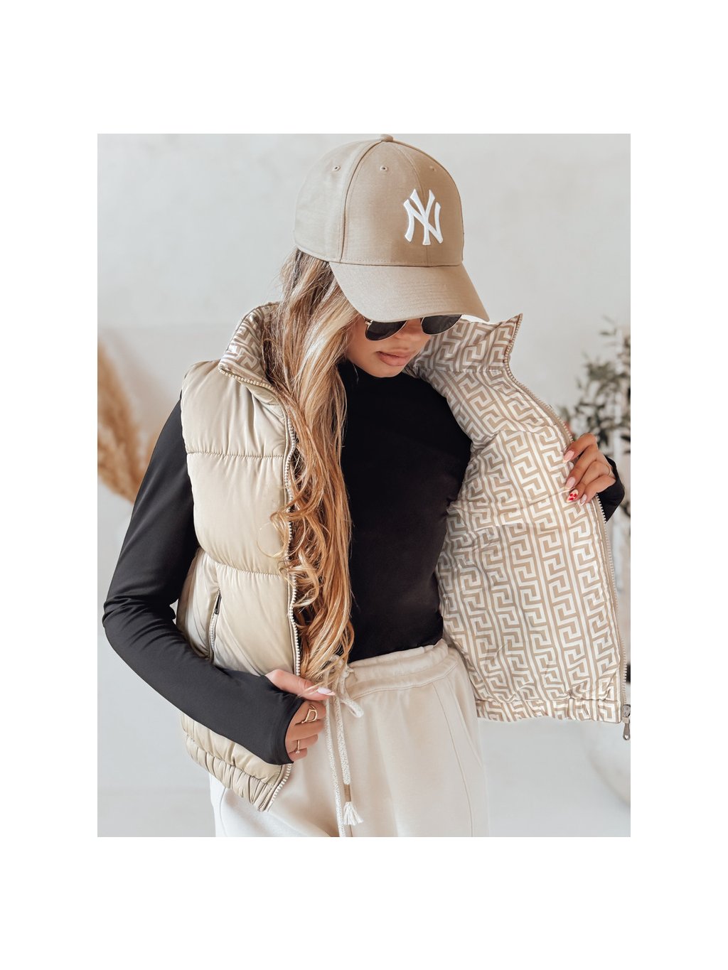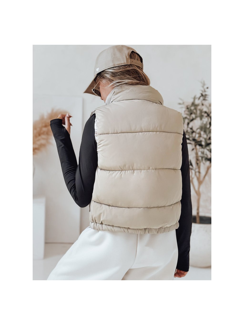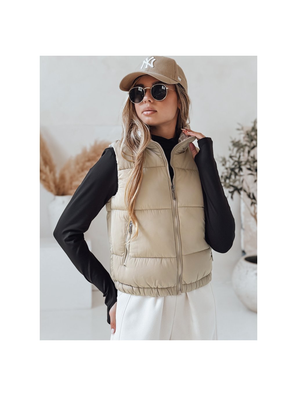 Béžová dámská krátká prošívaná vesta URBANELLE s elastickým pasem