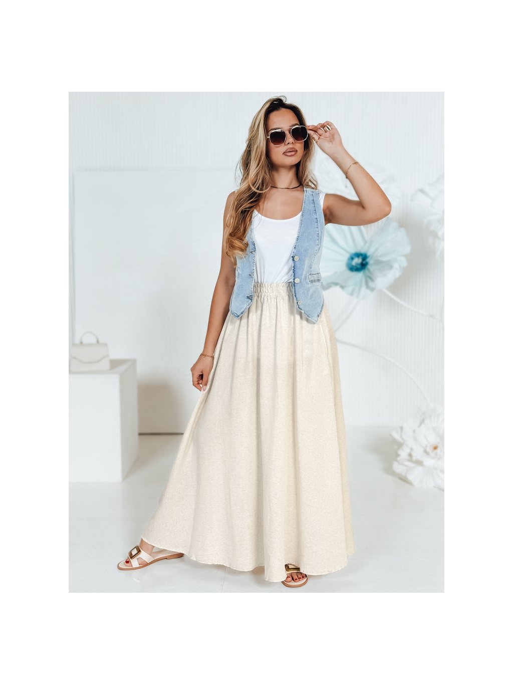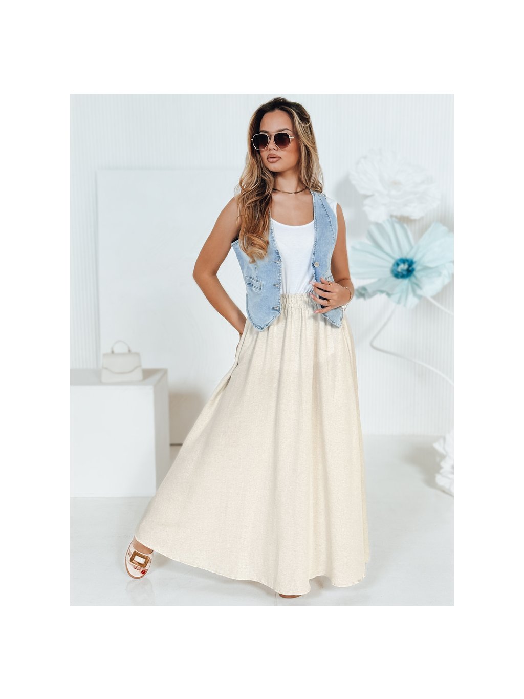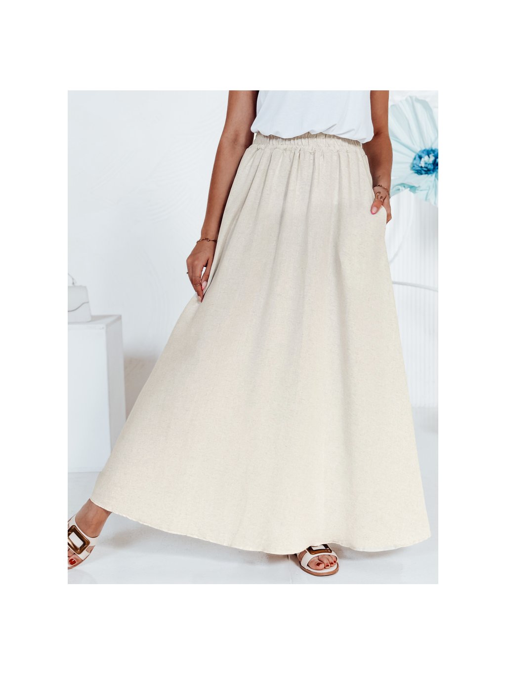 Béžová dámská maxi sukně z bavlny CISTAL