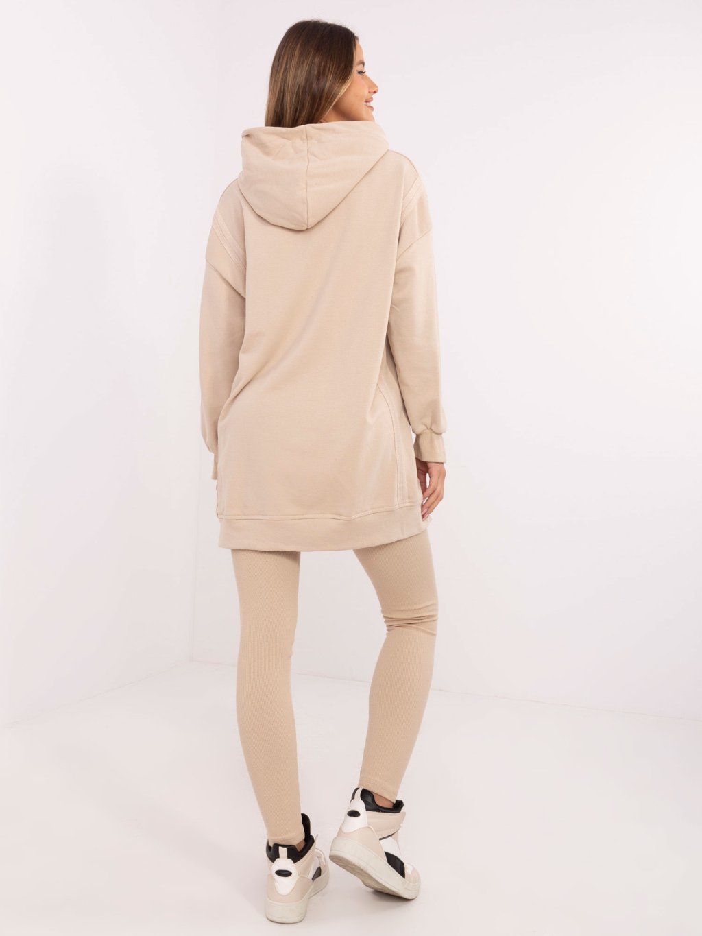 Béžová dámská souprava s žebrovanými legínami