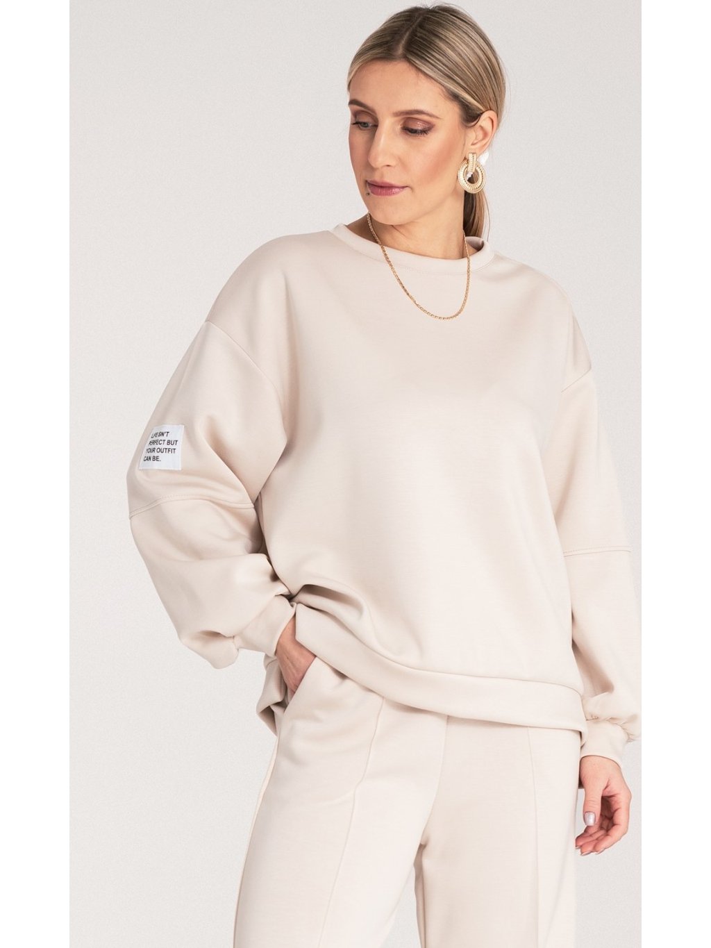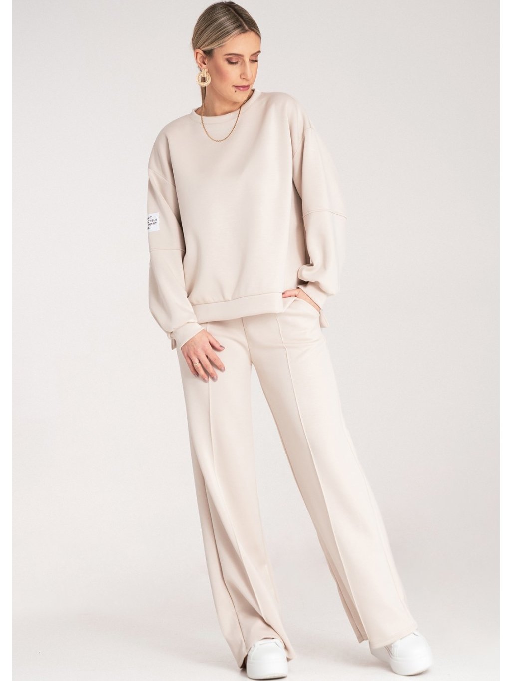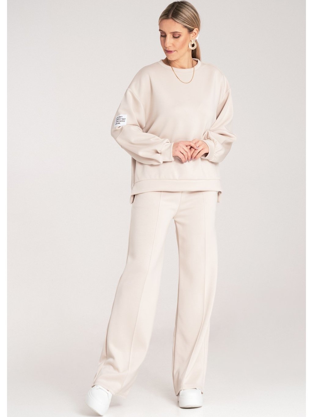 Béžová dámská tepláková souprava z viskózy se širokými nohavicemi