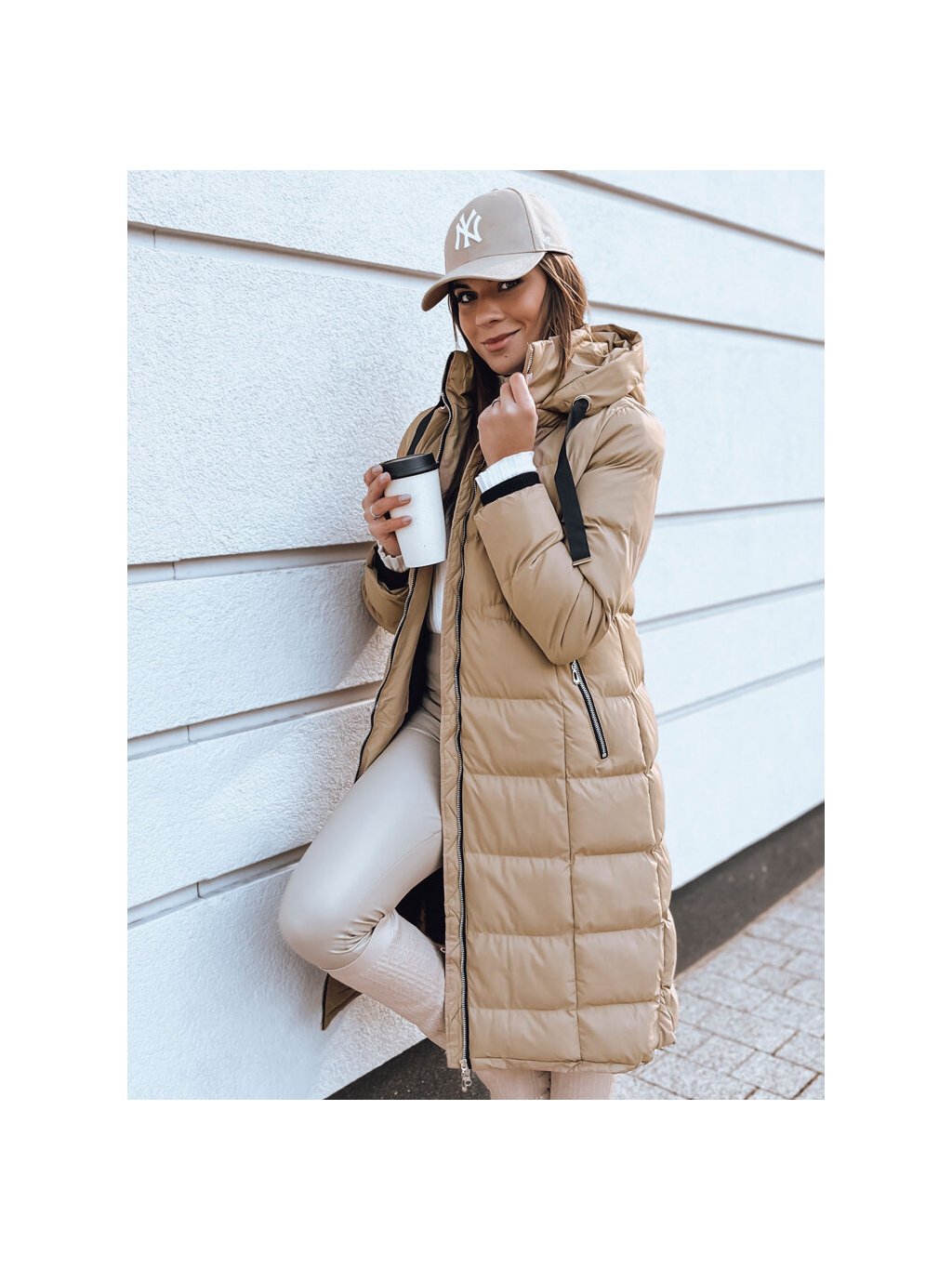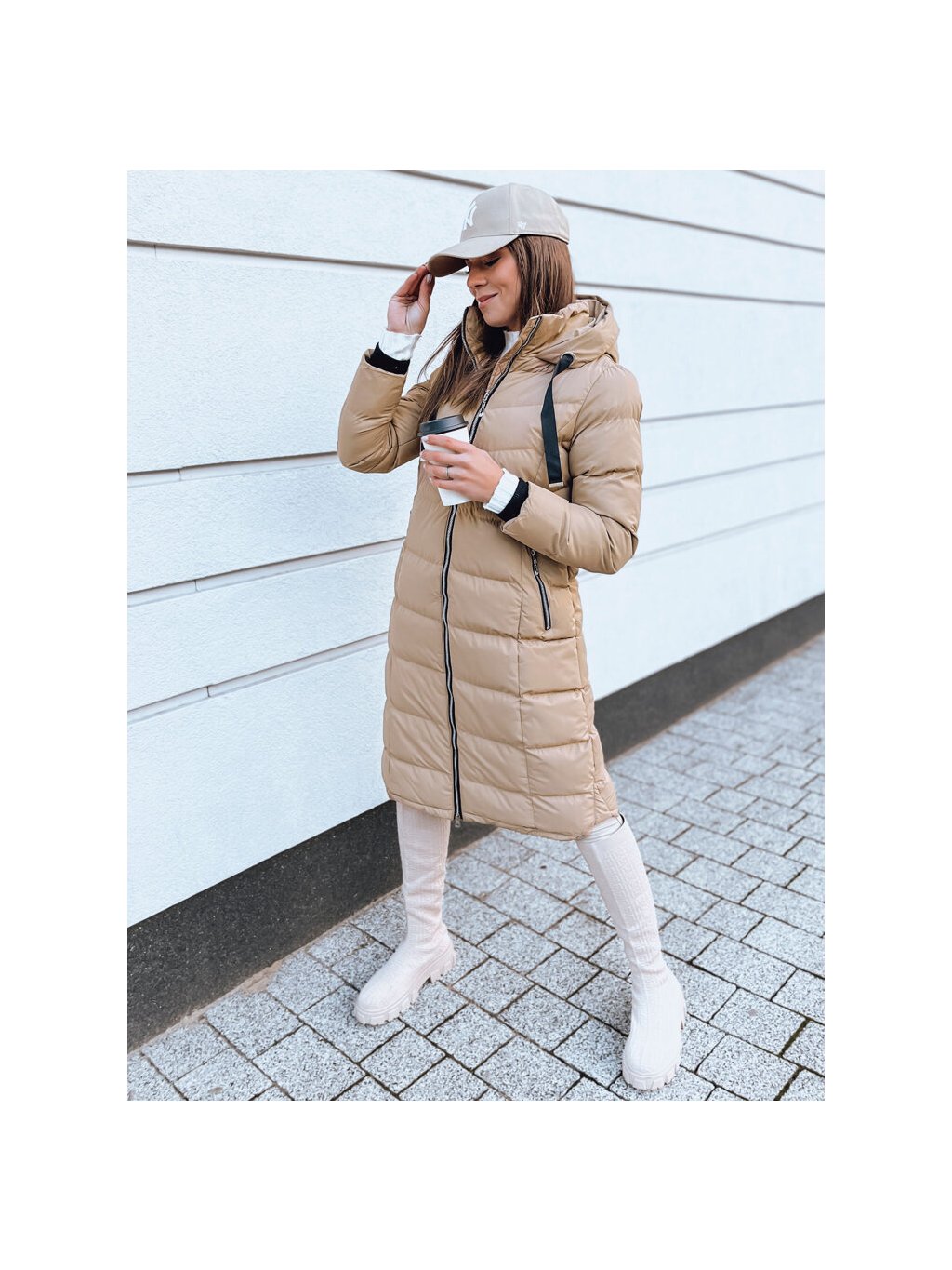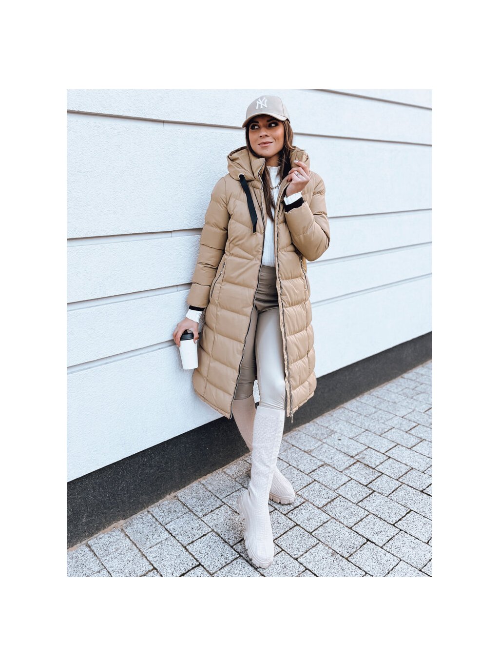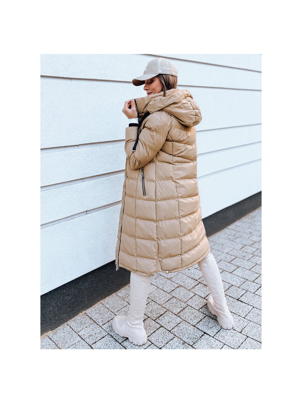 Béžová dlouhá prošívaná bunda MENSI
