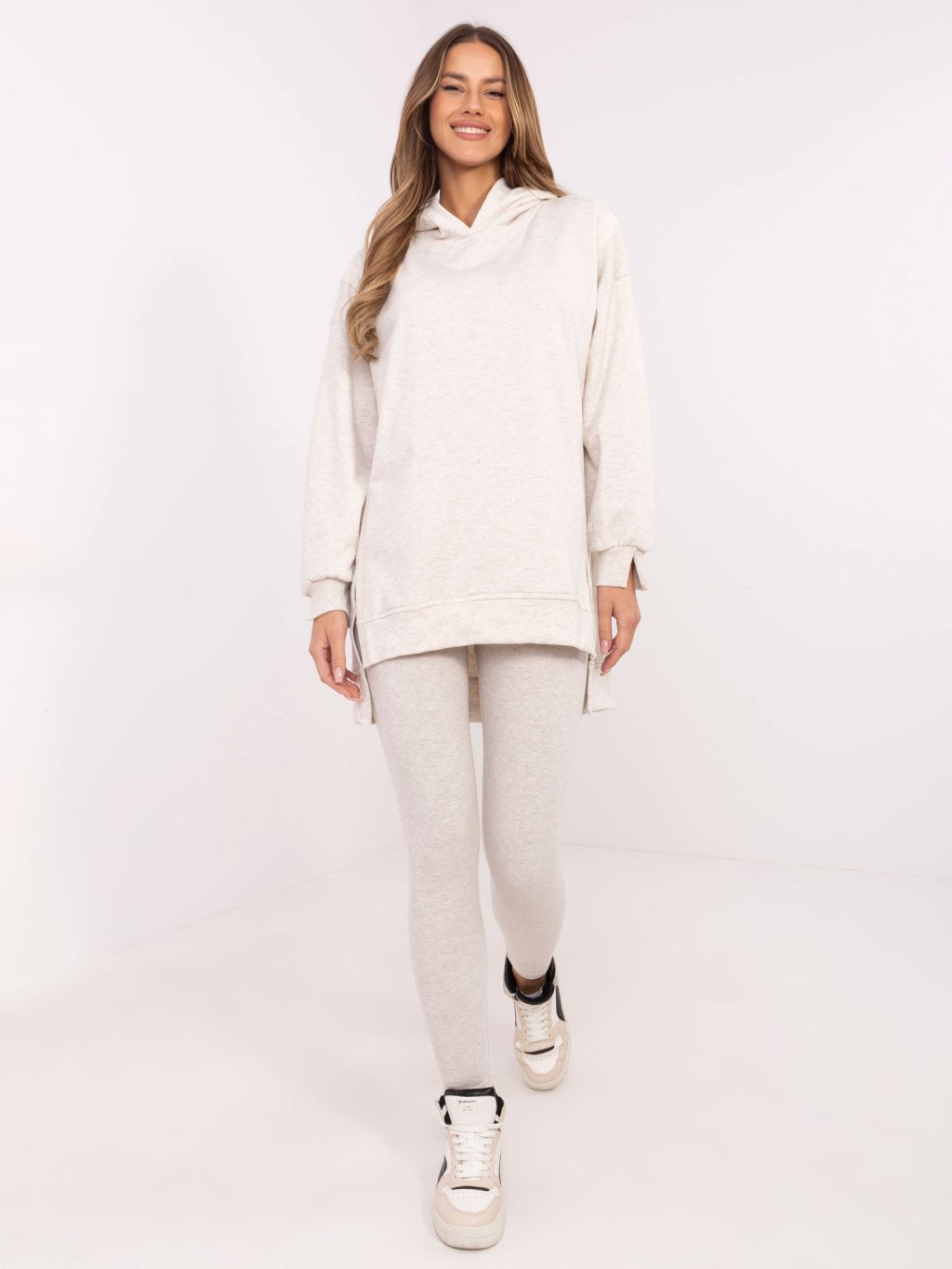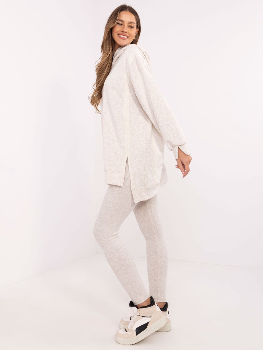 Materiálové složení mikiny: 70% bavlna, 30% polyester; materiálové složení legín: 90% bavlna, 10% elastan.