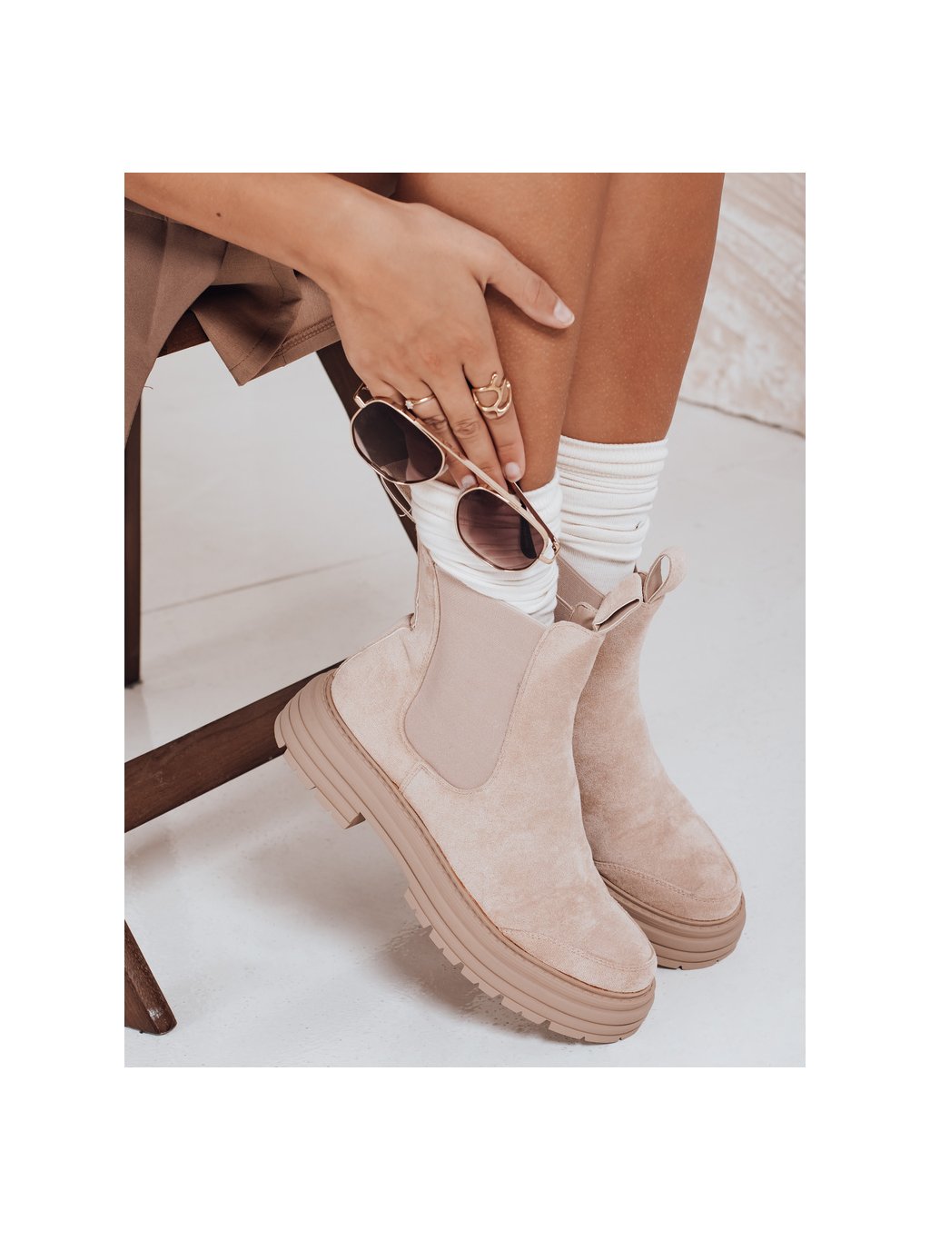Béžové dámské chelsea boty s přezkou MADDEN