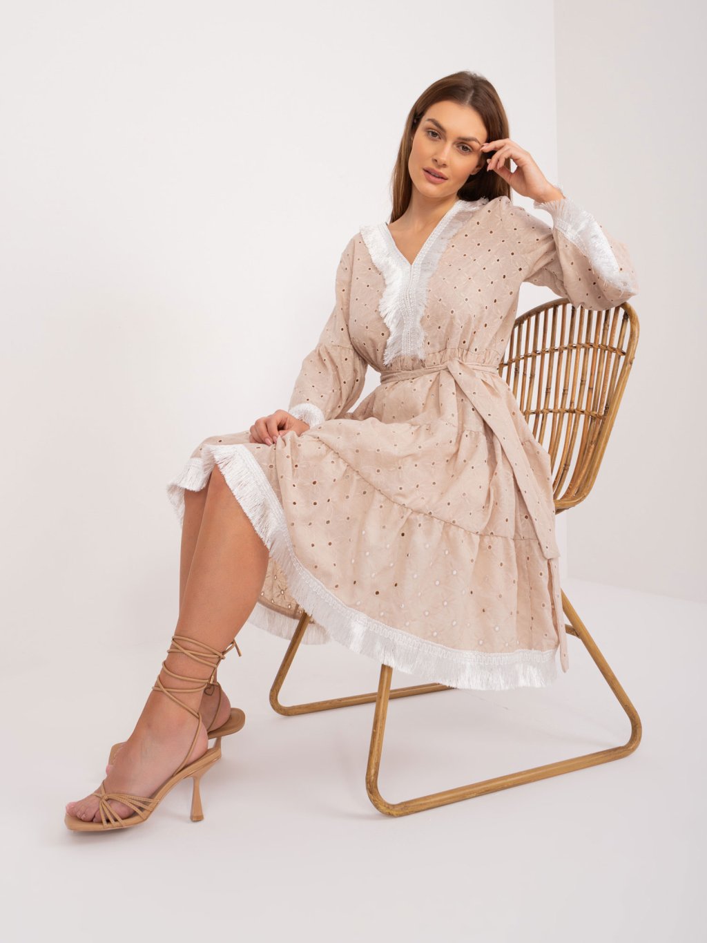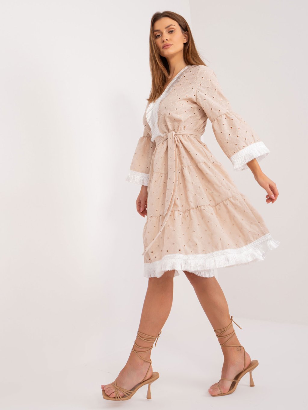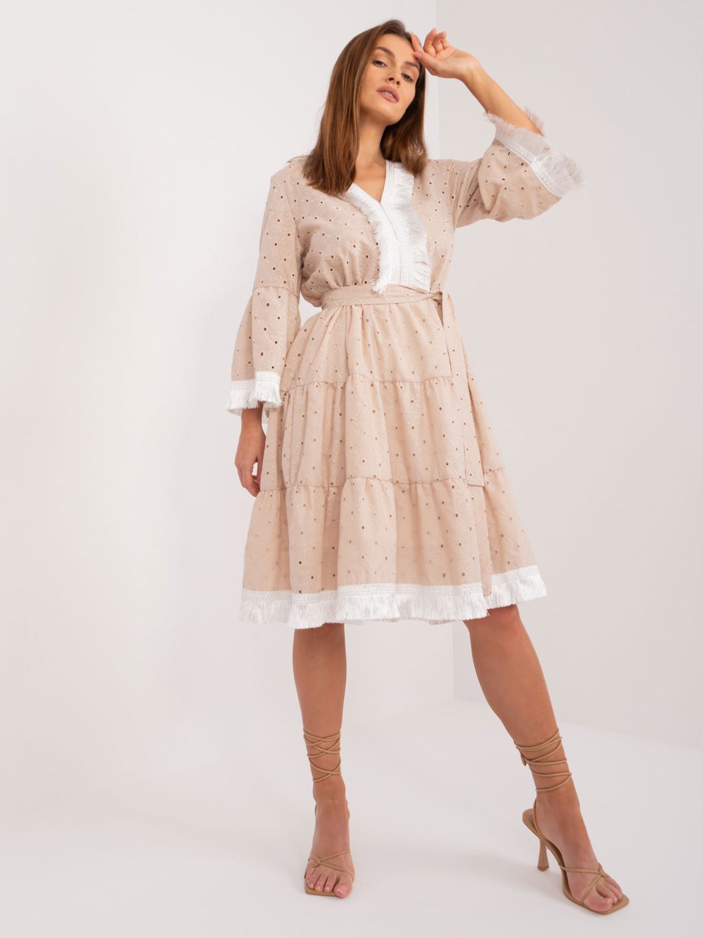 Béžové madeirové volánkové šaty