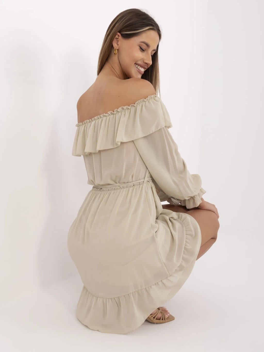 Modelka na obrázcích je vysoká 176 cm, obvod přes prsa 85 cm, obvod pasu 64 cm a boky 92 cm.