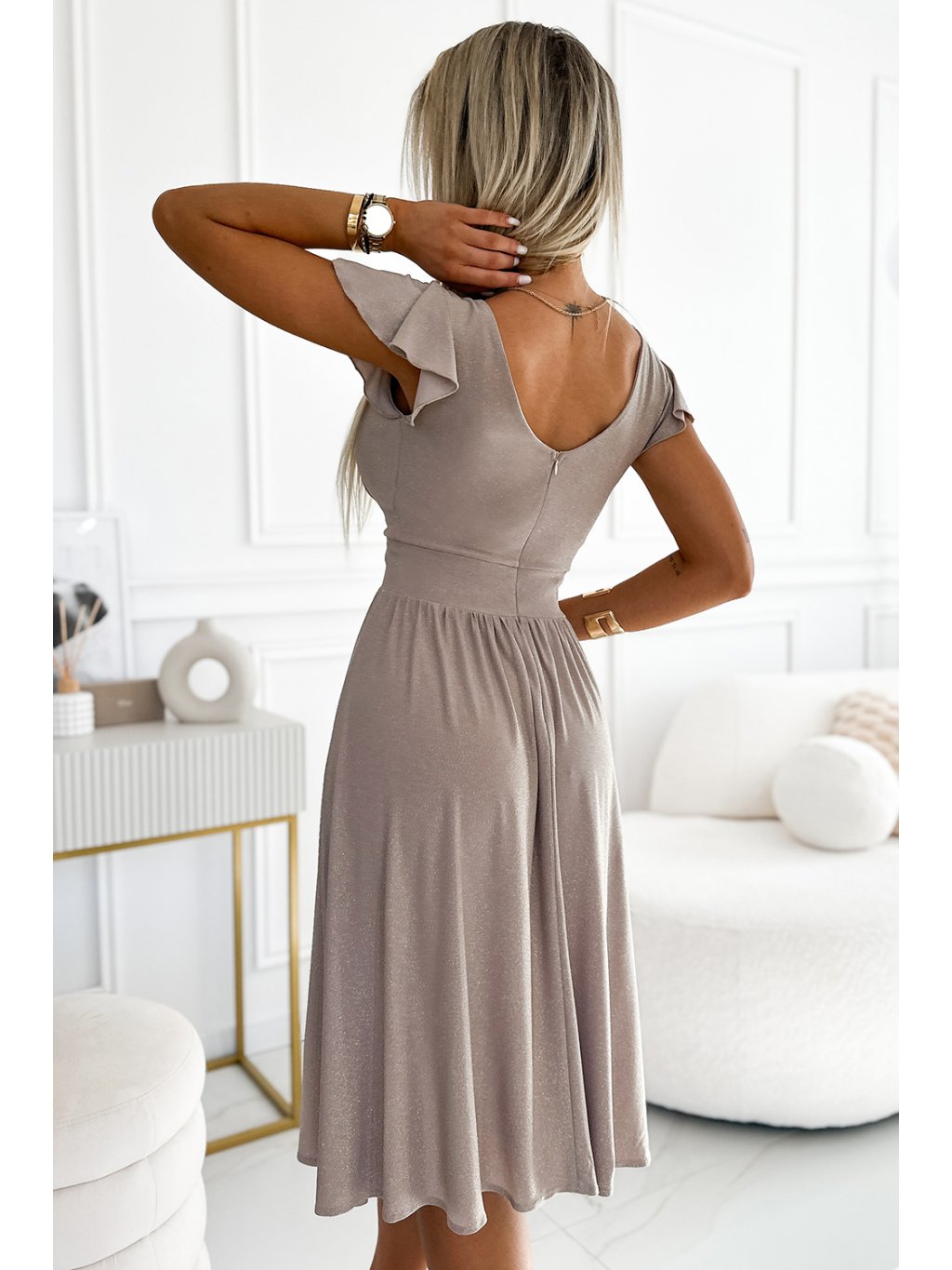 Béžové třpytivé midi šaty s výstřihem MATYLDA