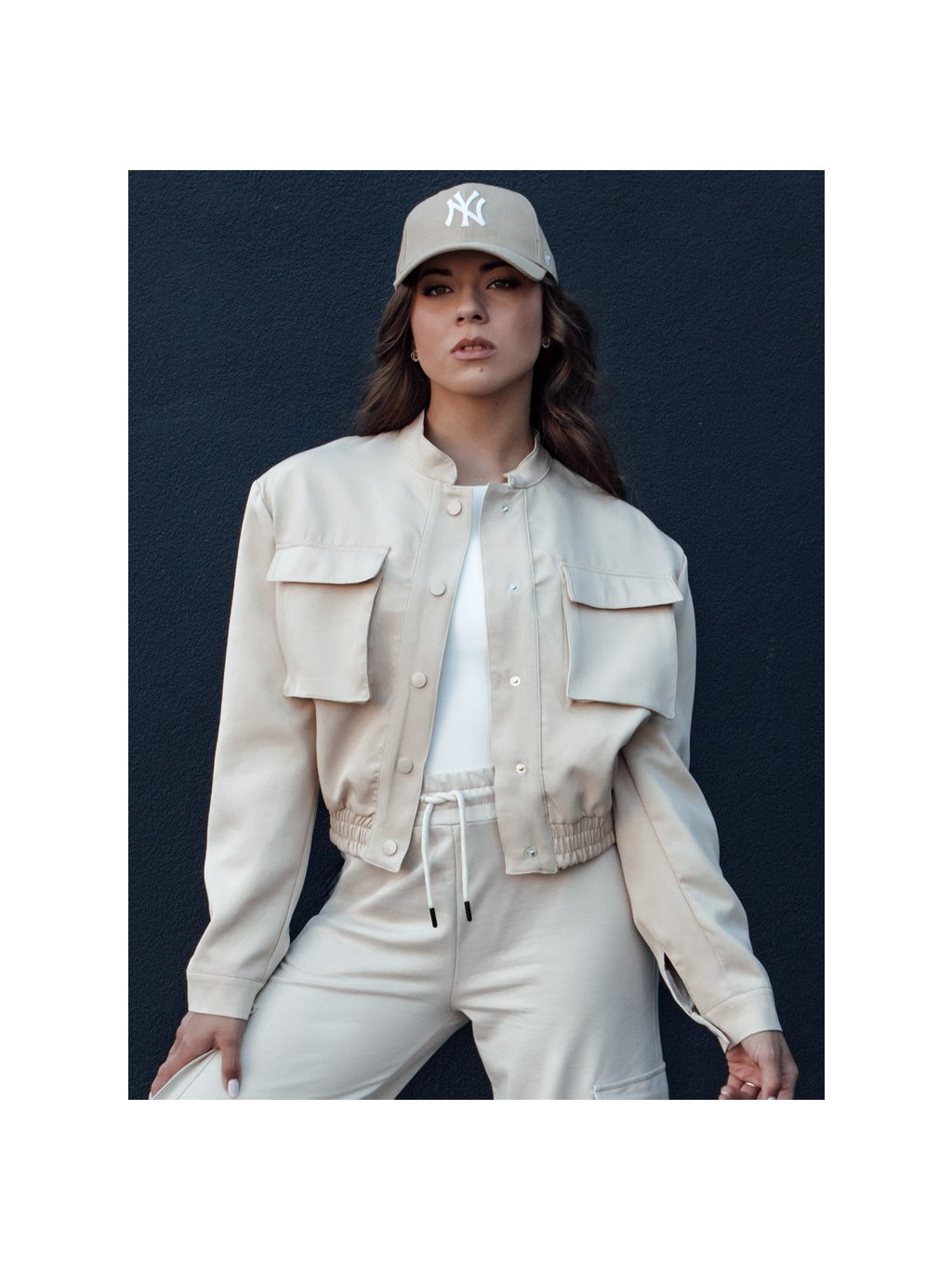 Béžový dámský bomber s velkými kapsami PRIEV