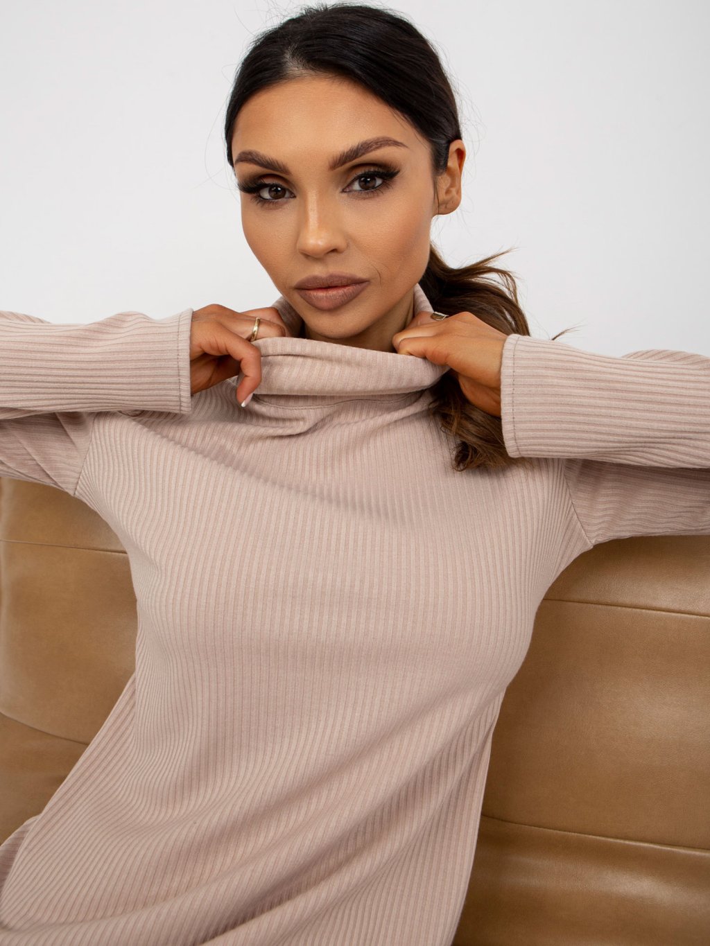 Modelka na obrázcích je vysoká 168 cm, obvod přes prsa 89 cm, obvod pasu 60 cm a boky 91 cm.