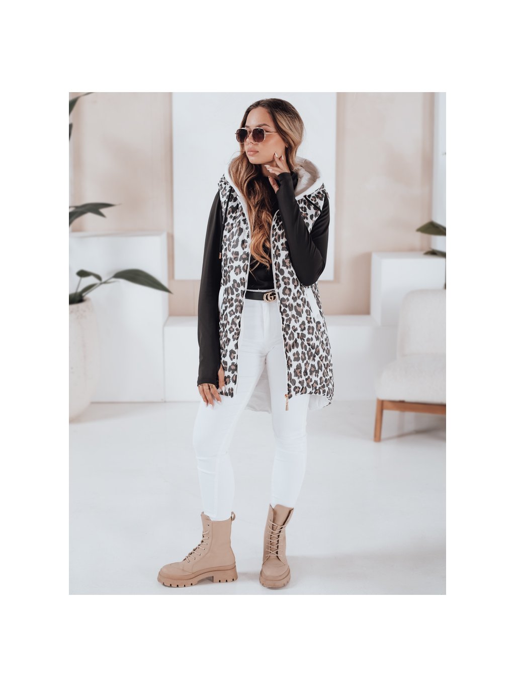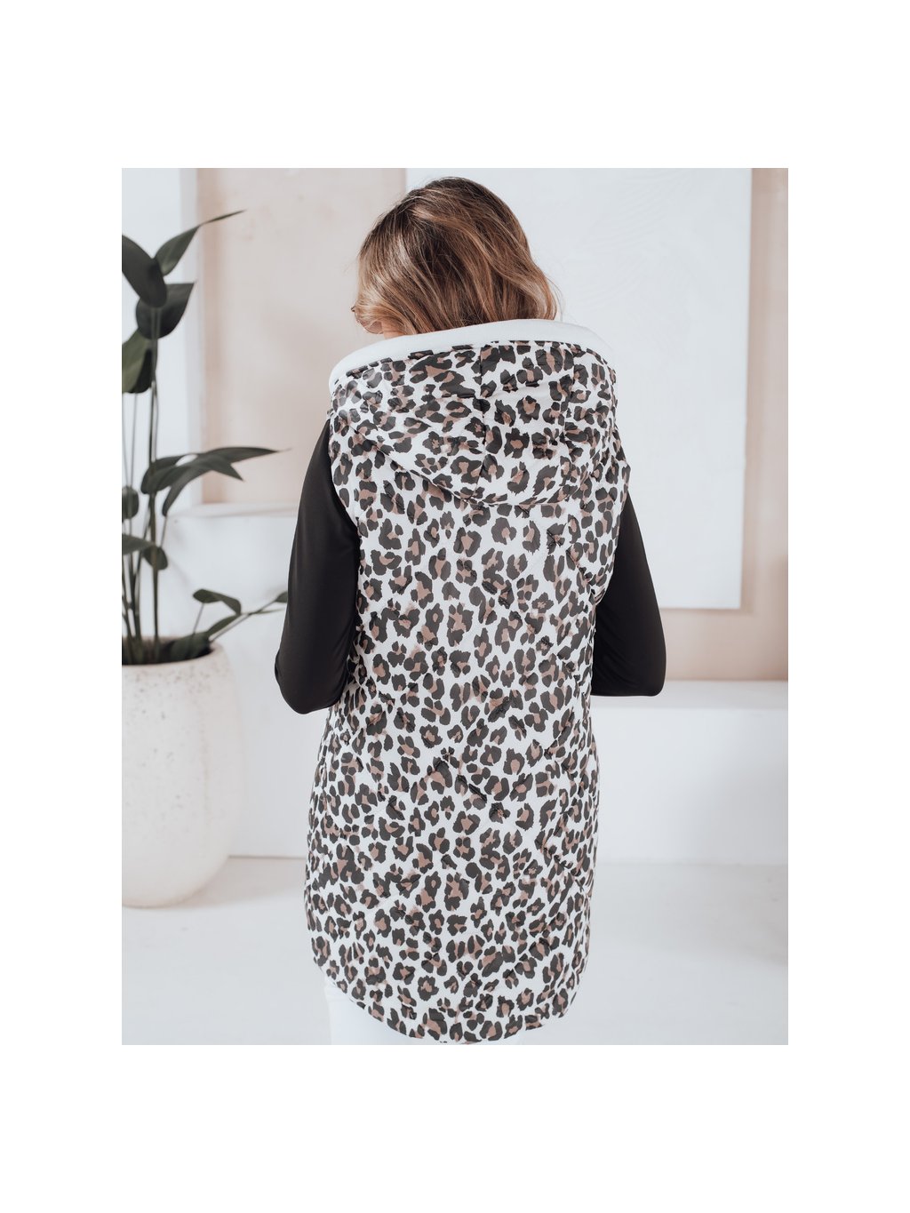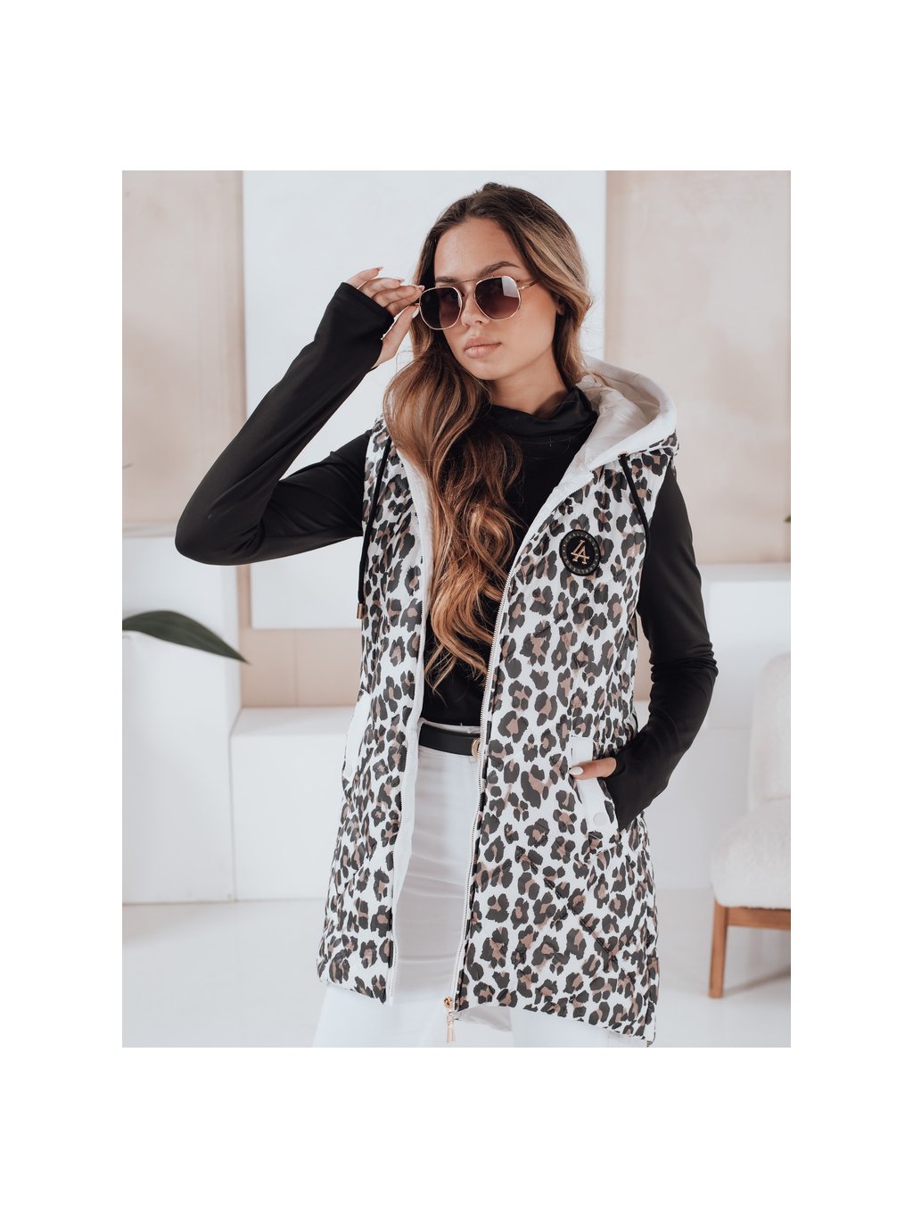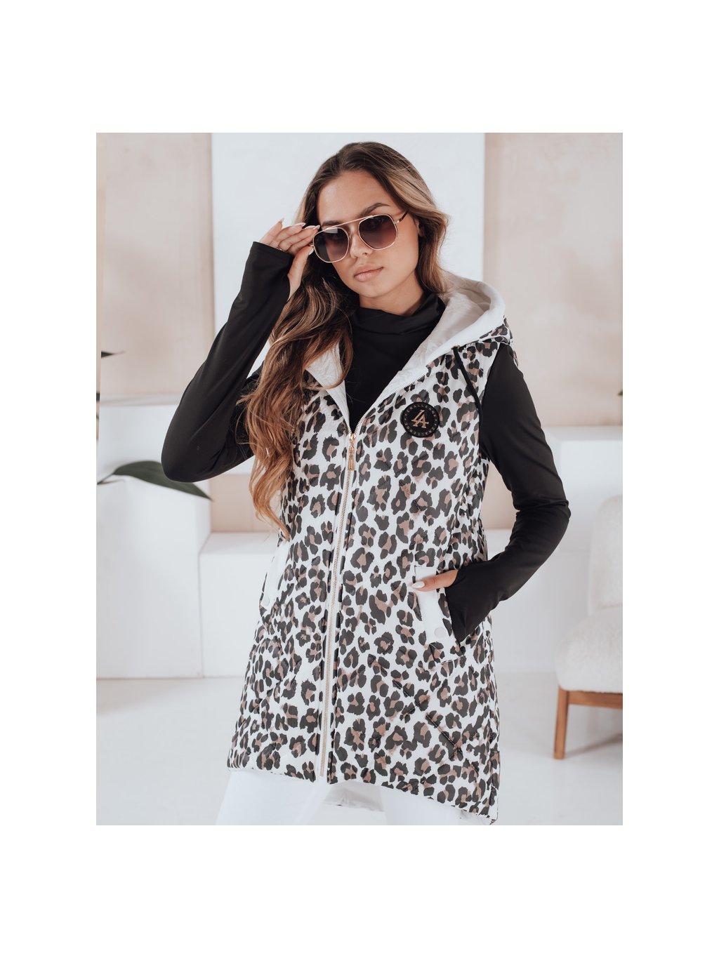 Bílá dámská asymetrická prošívaná vesta s leopardím vzorem ELMERA
