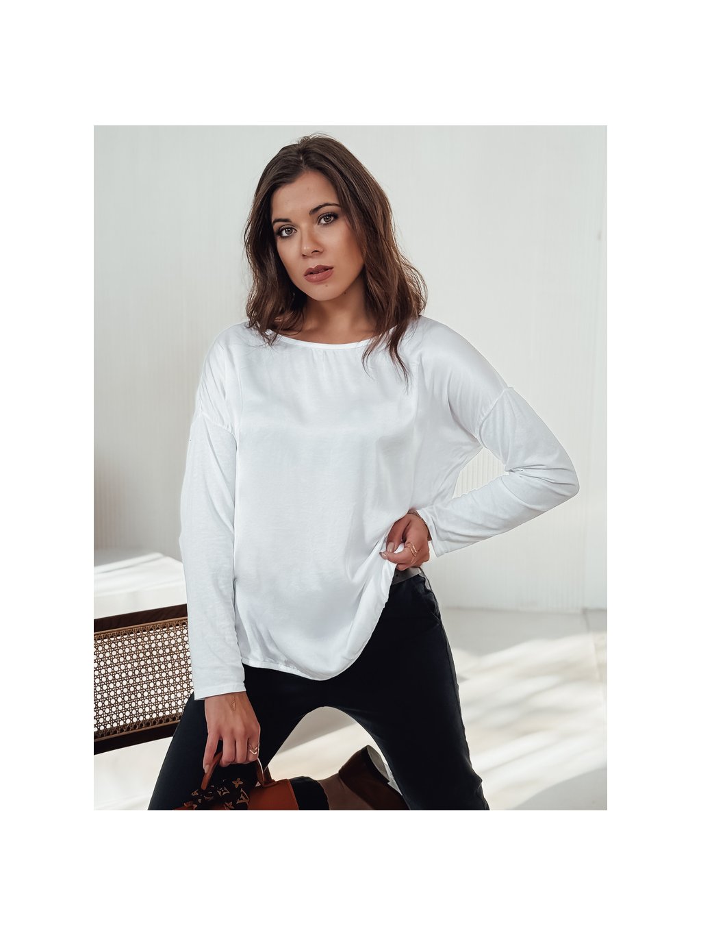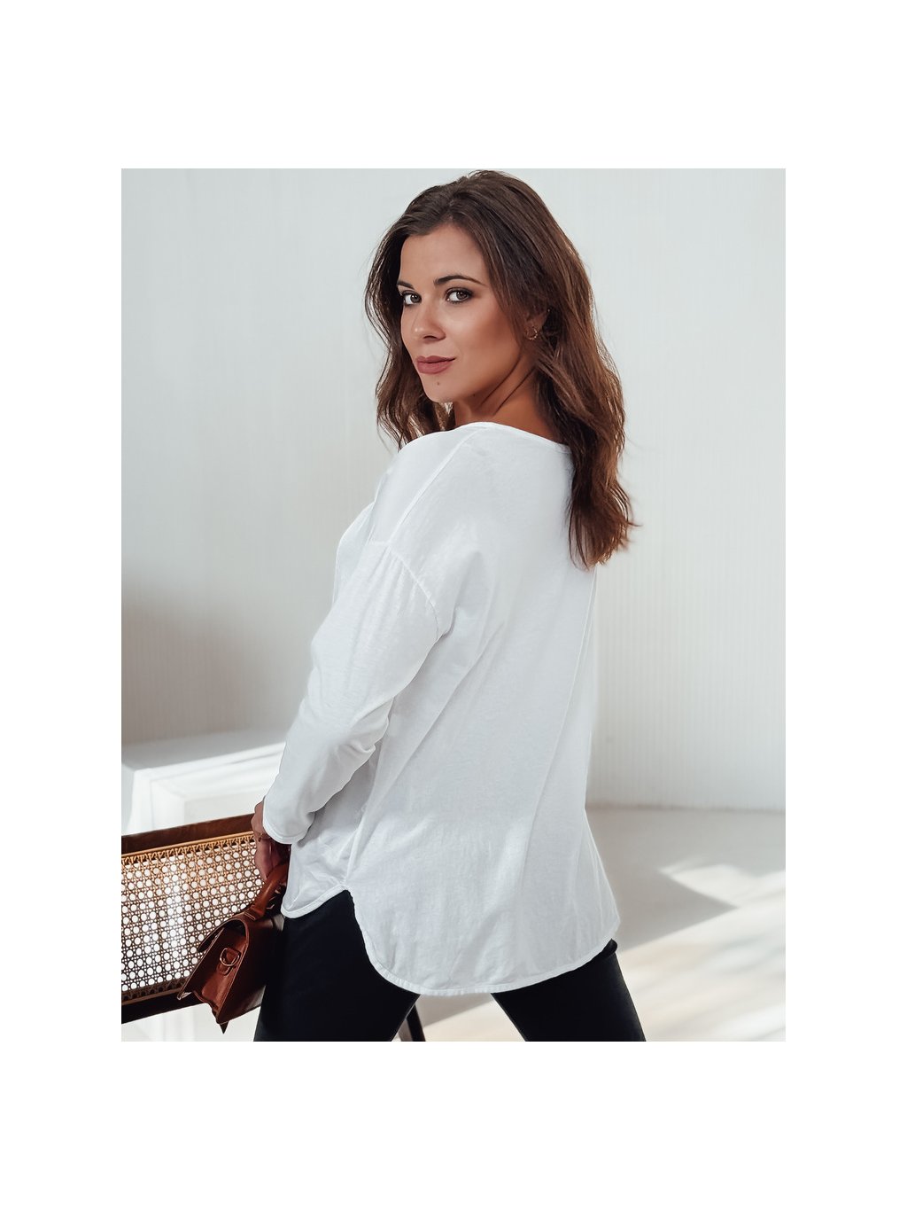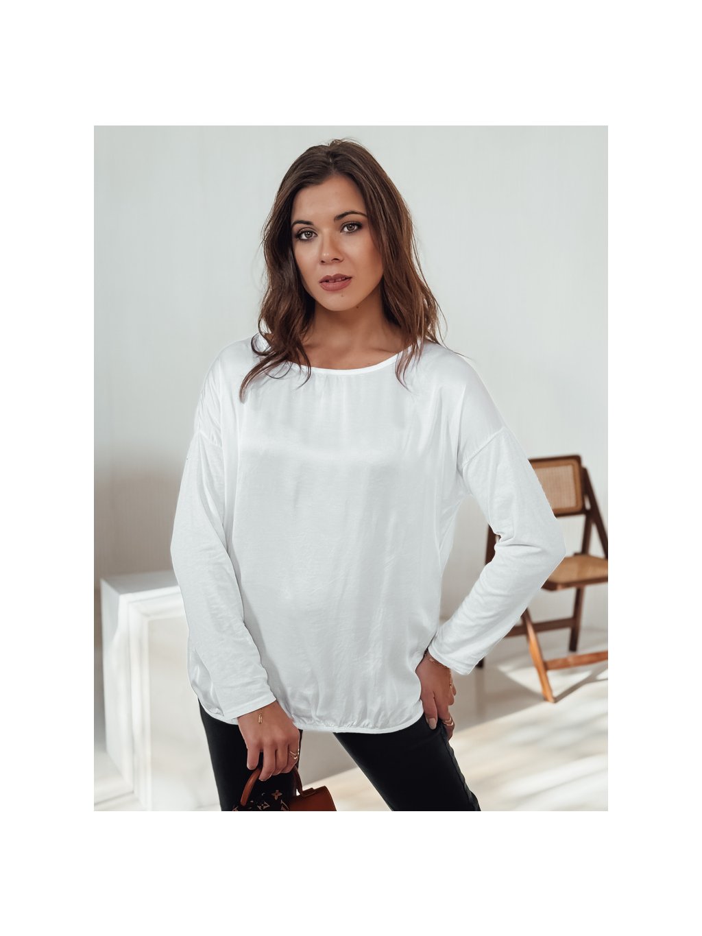 Bílá dámská oversize halenka s přívěskem SILKINEA