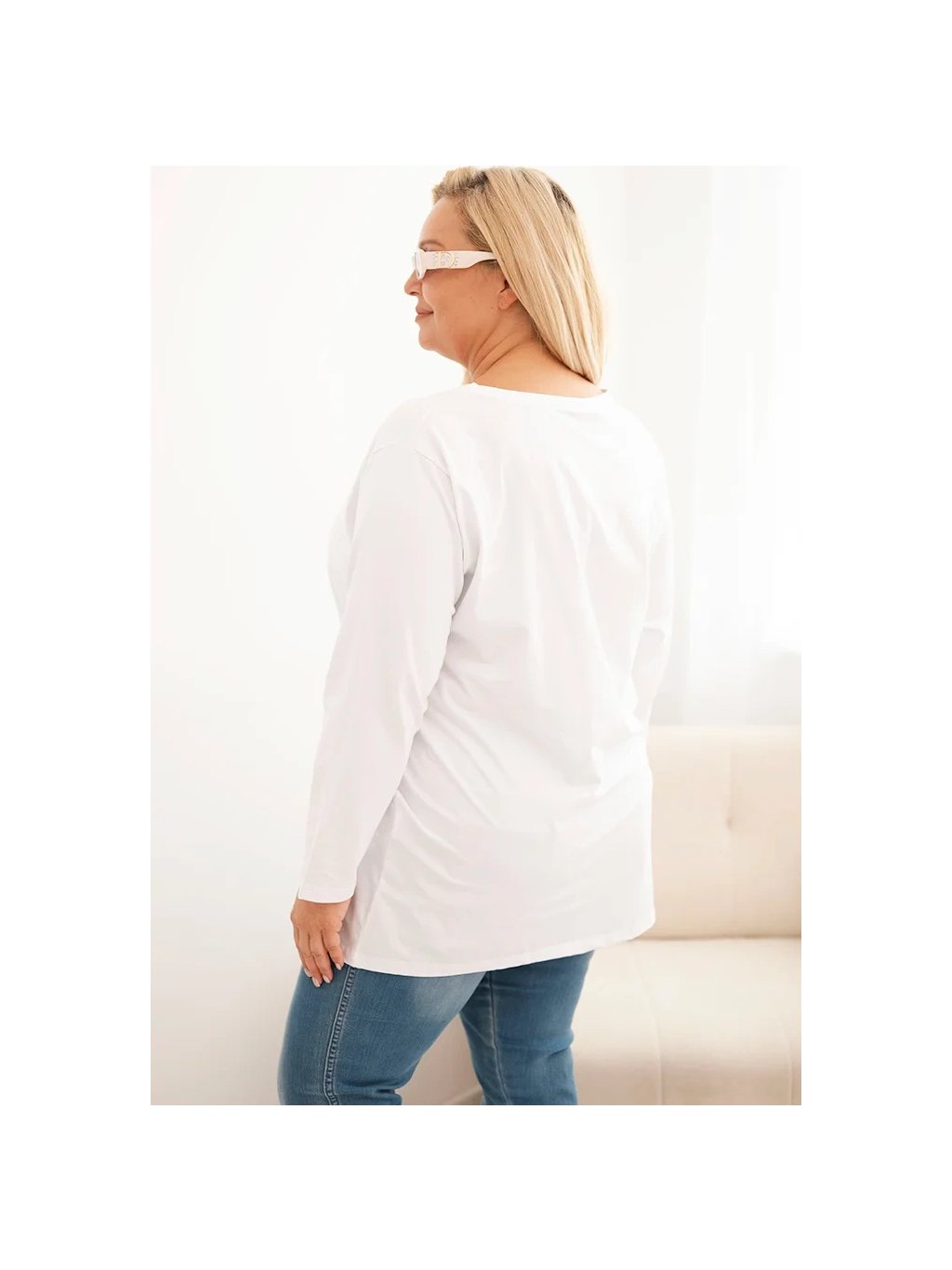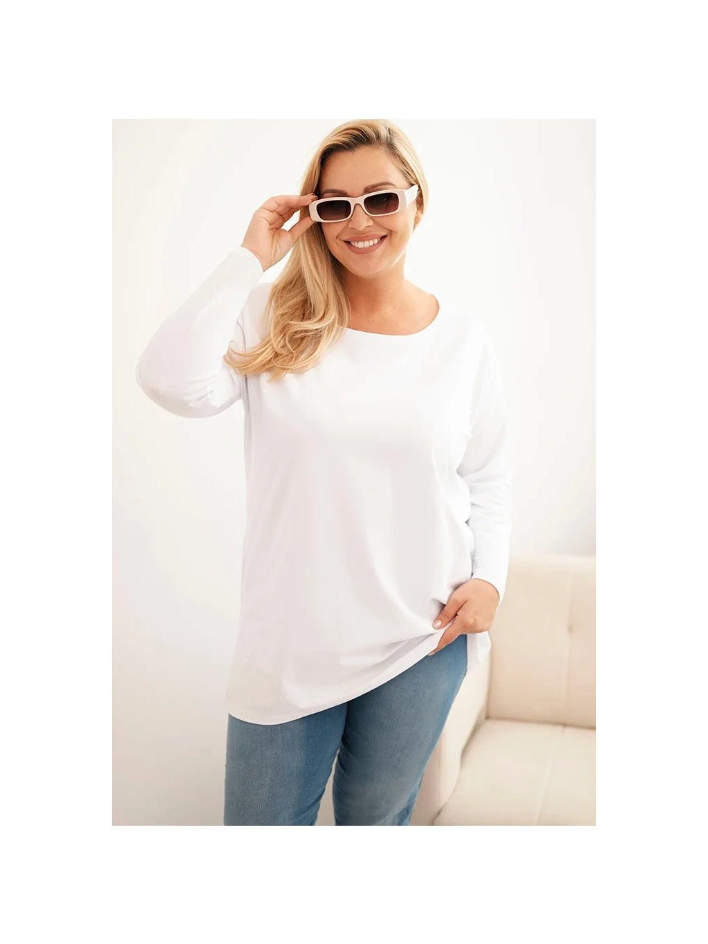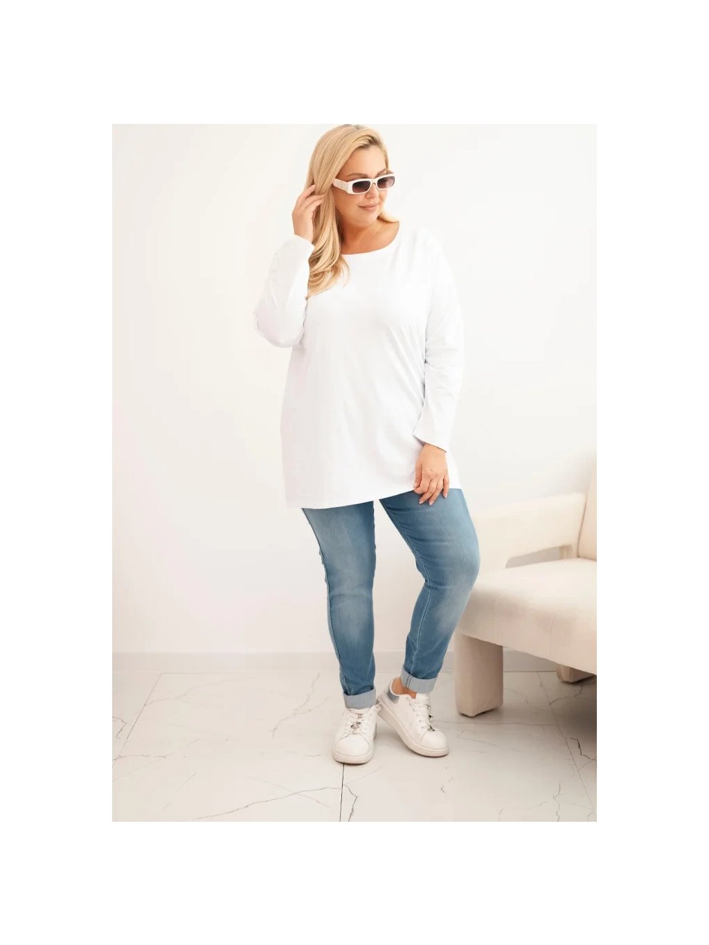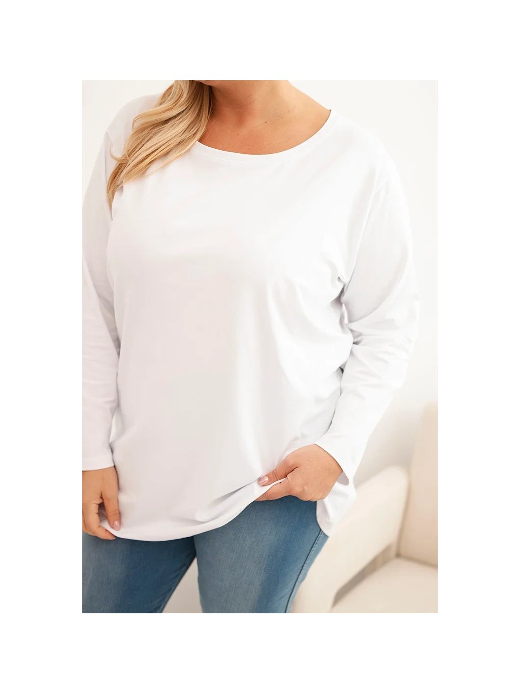 Bílá plus size halenka s kulatým výstřihem