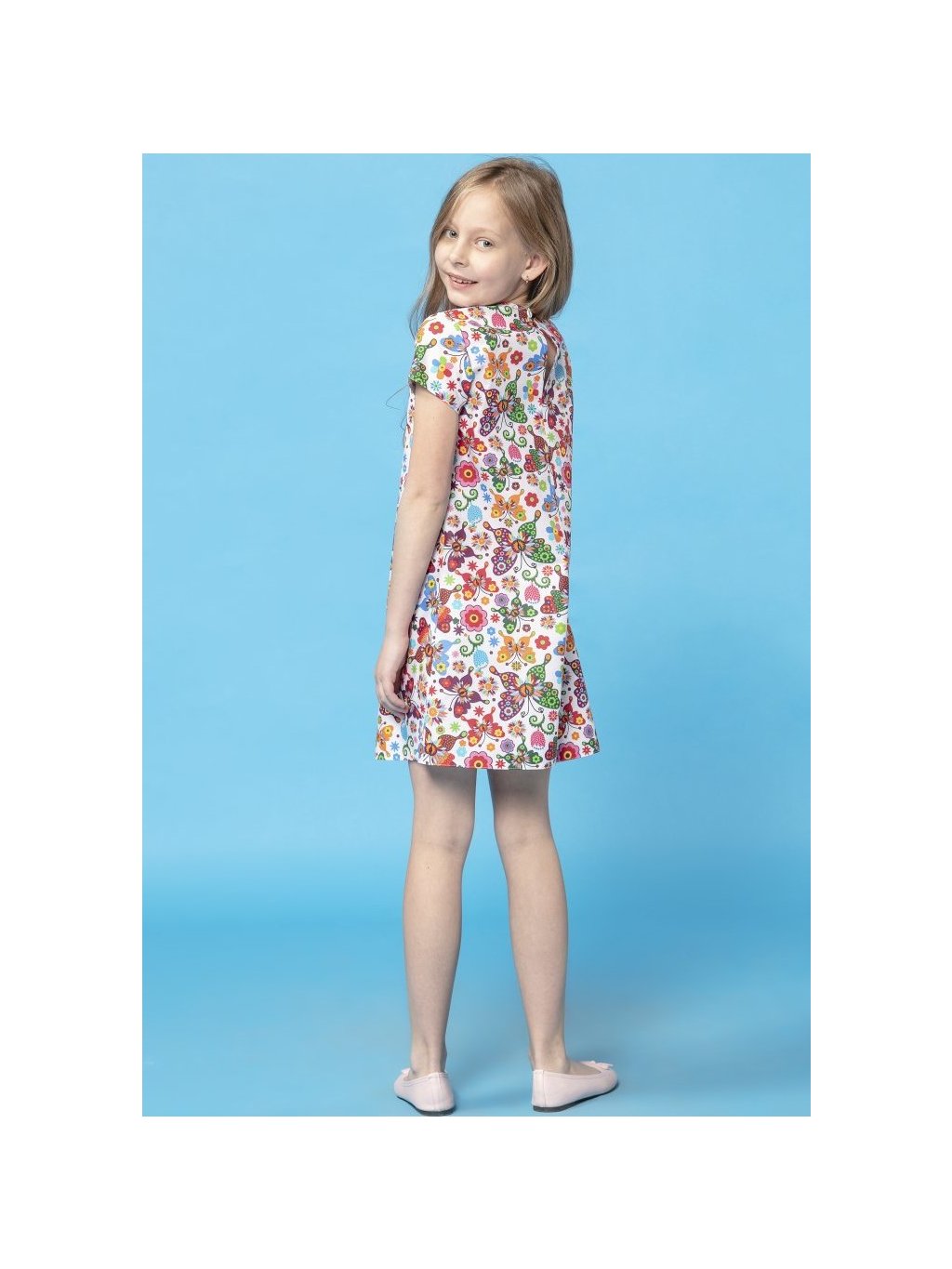 Bílé dívčí jednoduché šaty máma a dcera s barevným vzorem