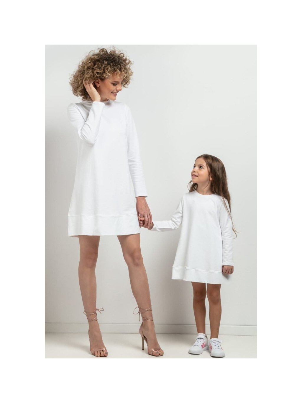 Bílé dívčí šaty máma a dcera s ozdobným řasením ve spodní části