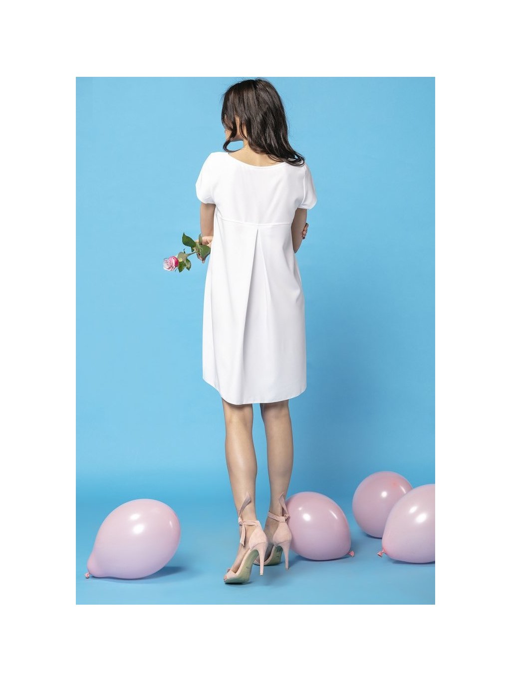 Bílé elegantní šaty máma a dcera s řasením na zádech