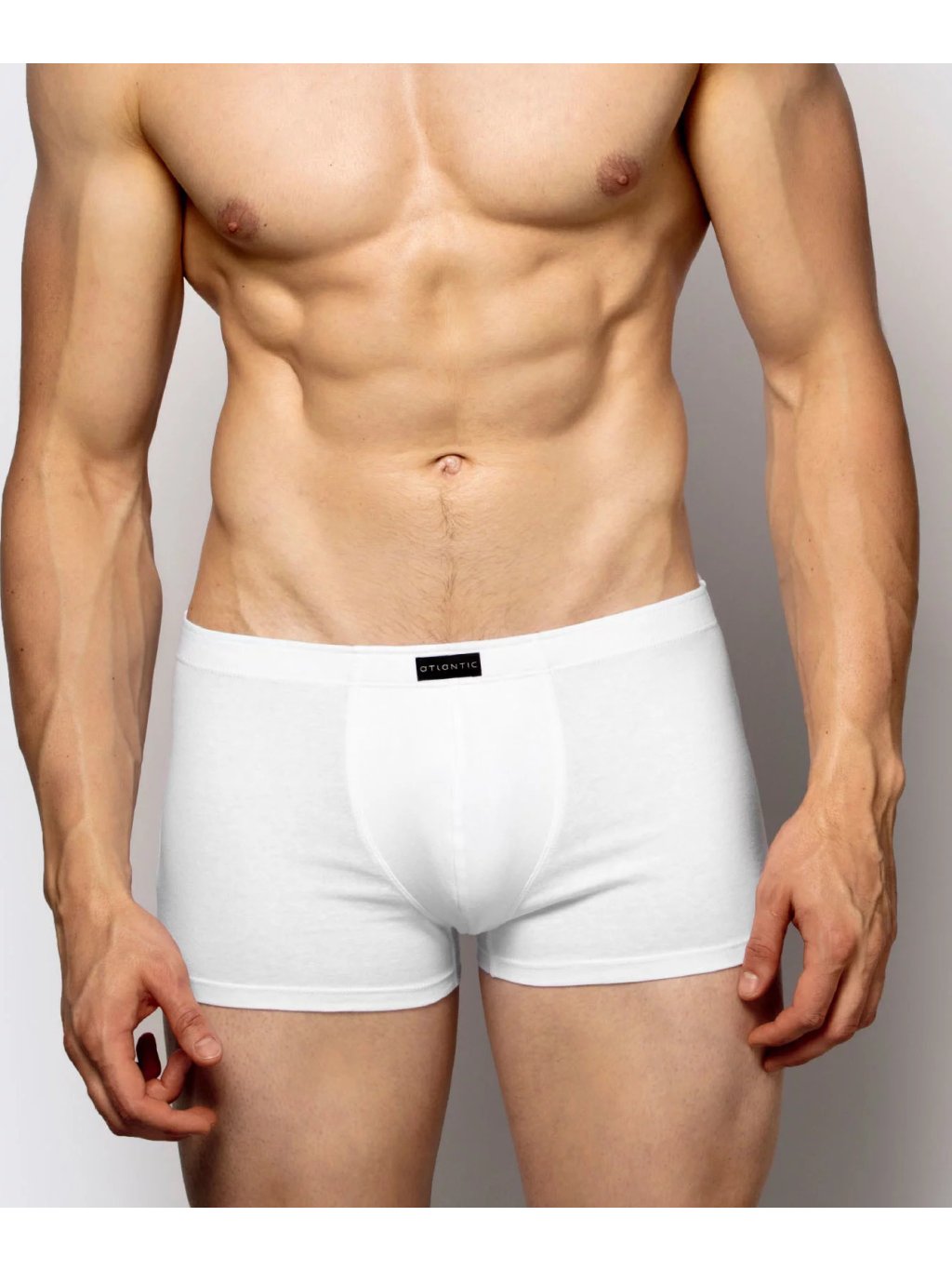 Komfortní pas: Pružná guma s decentním logem Atlantic netlačí a drží boxery bezpečně na místě.