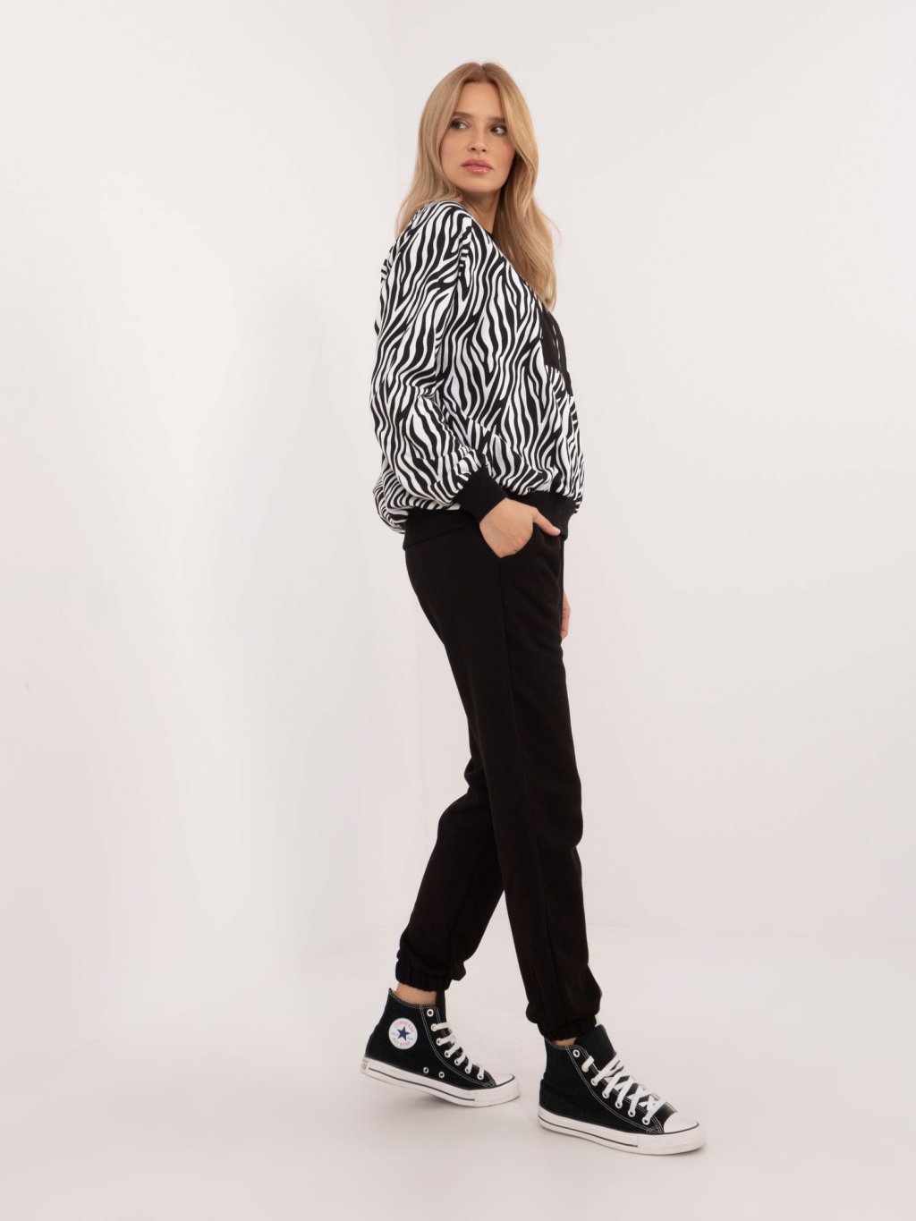 Modelka na obrázcích je vysoká 175 cm, obvod přes prsa má 90 cm, obvodu pasu 66 cm a boky 94 cm.