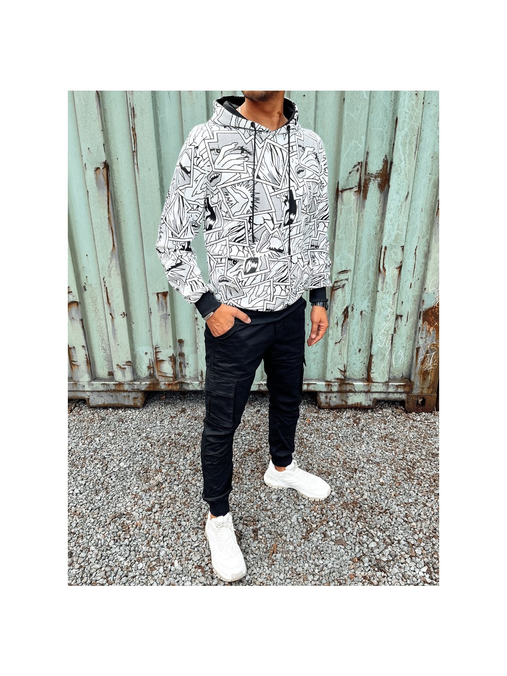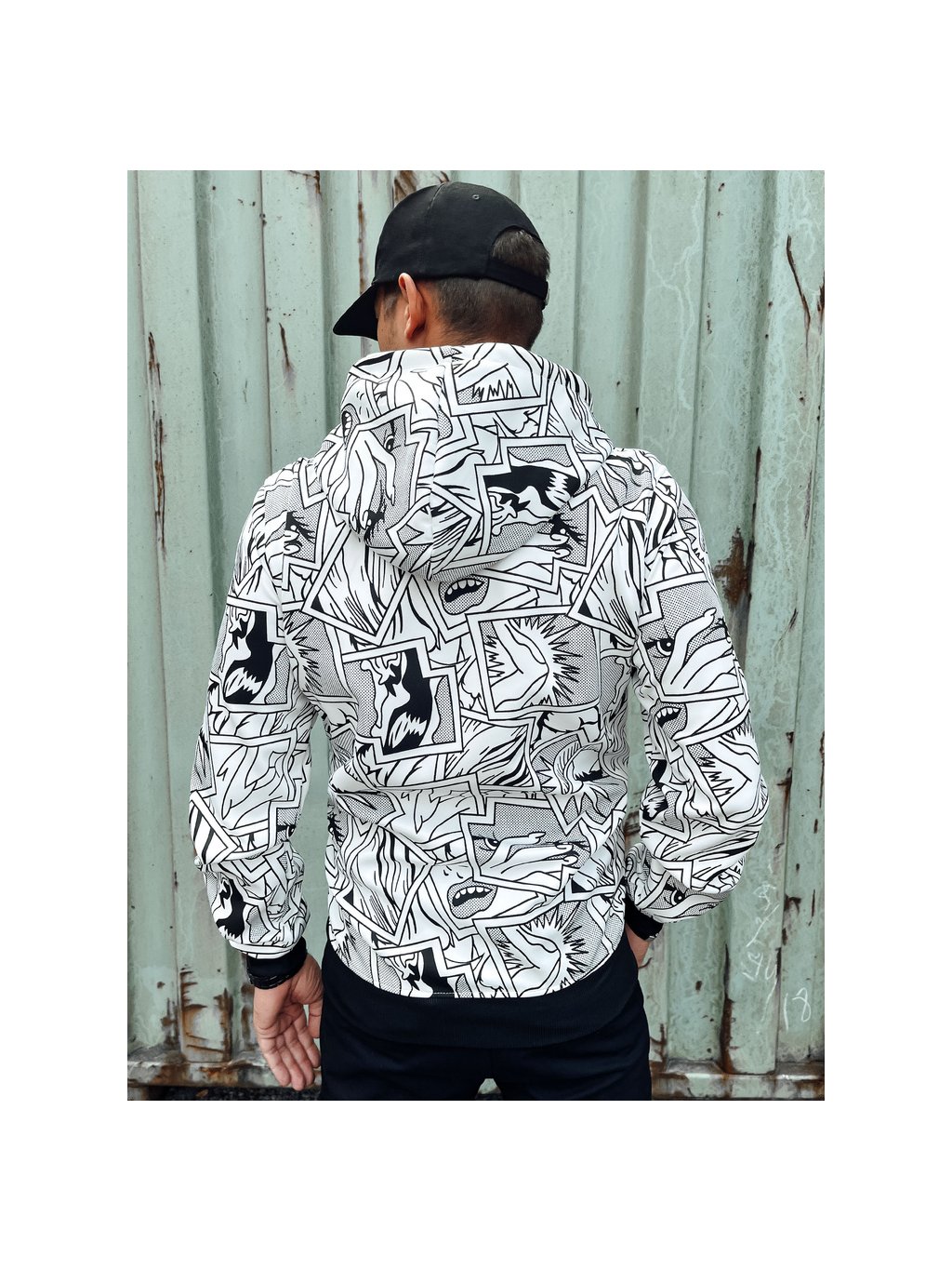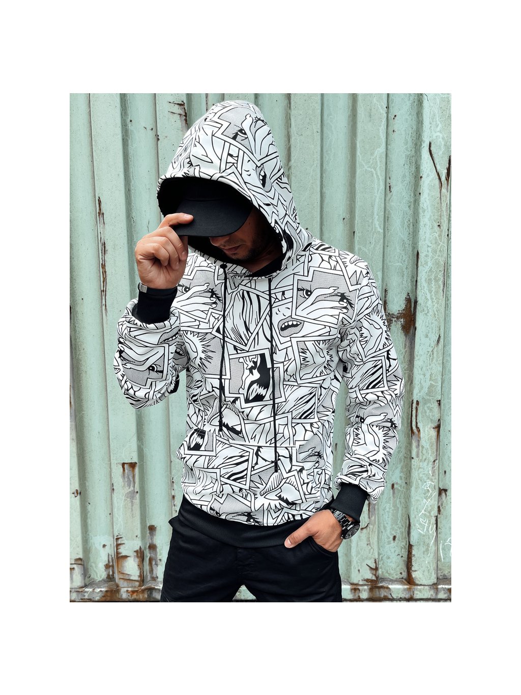 Bílo-černá pánská mikina s komiksovým potiskem