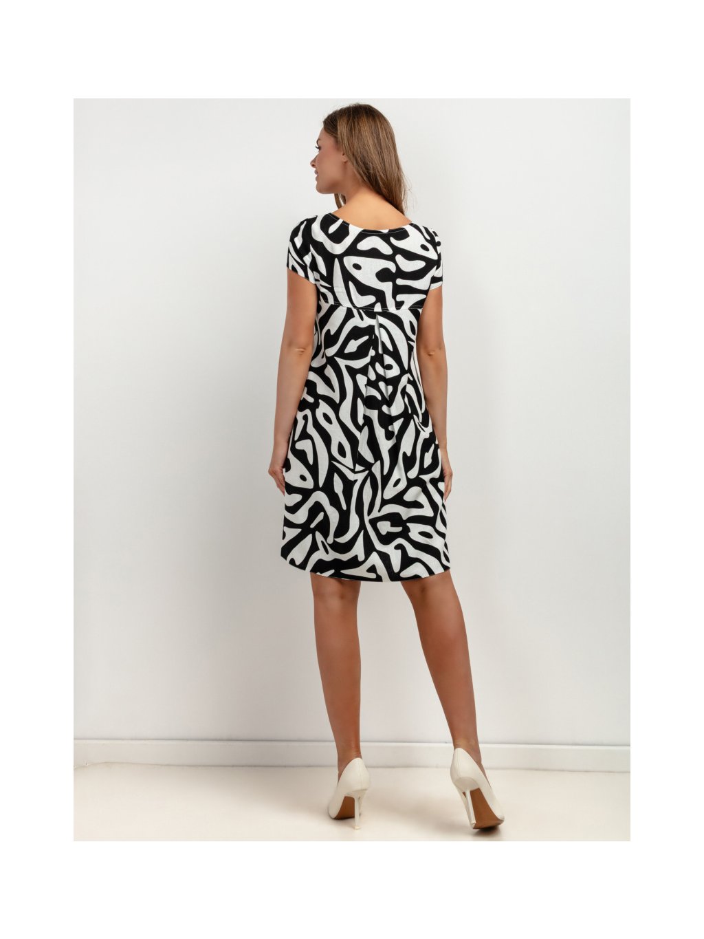 Bílo-černé letní vzorované šaty z viskózy a lnu