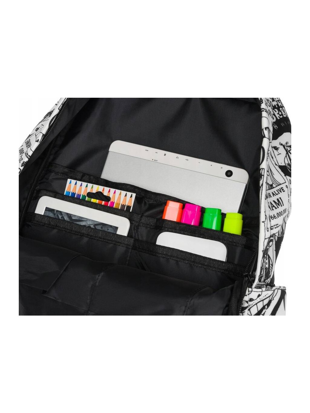 - uvnitř hlavní komory jedna velká otevřená kapsa a 6 menších otevřených kapes