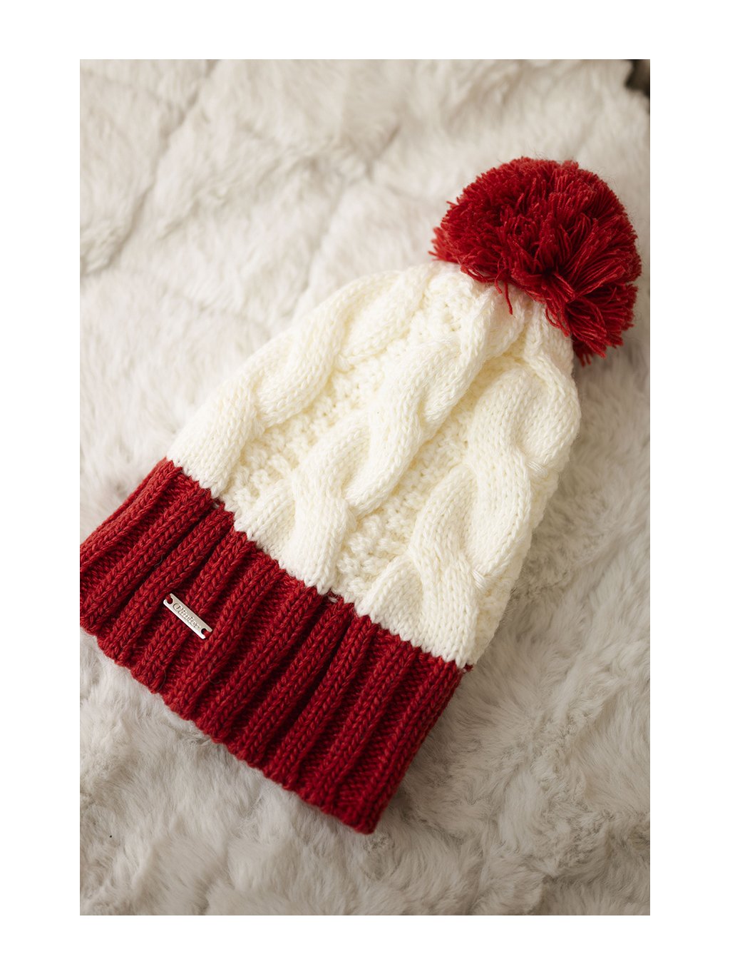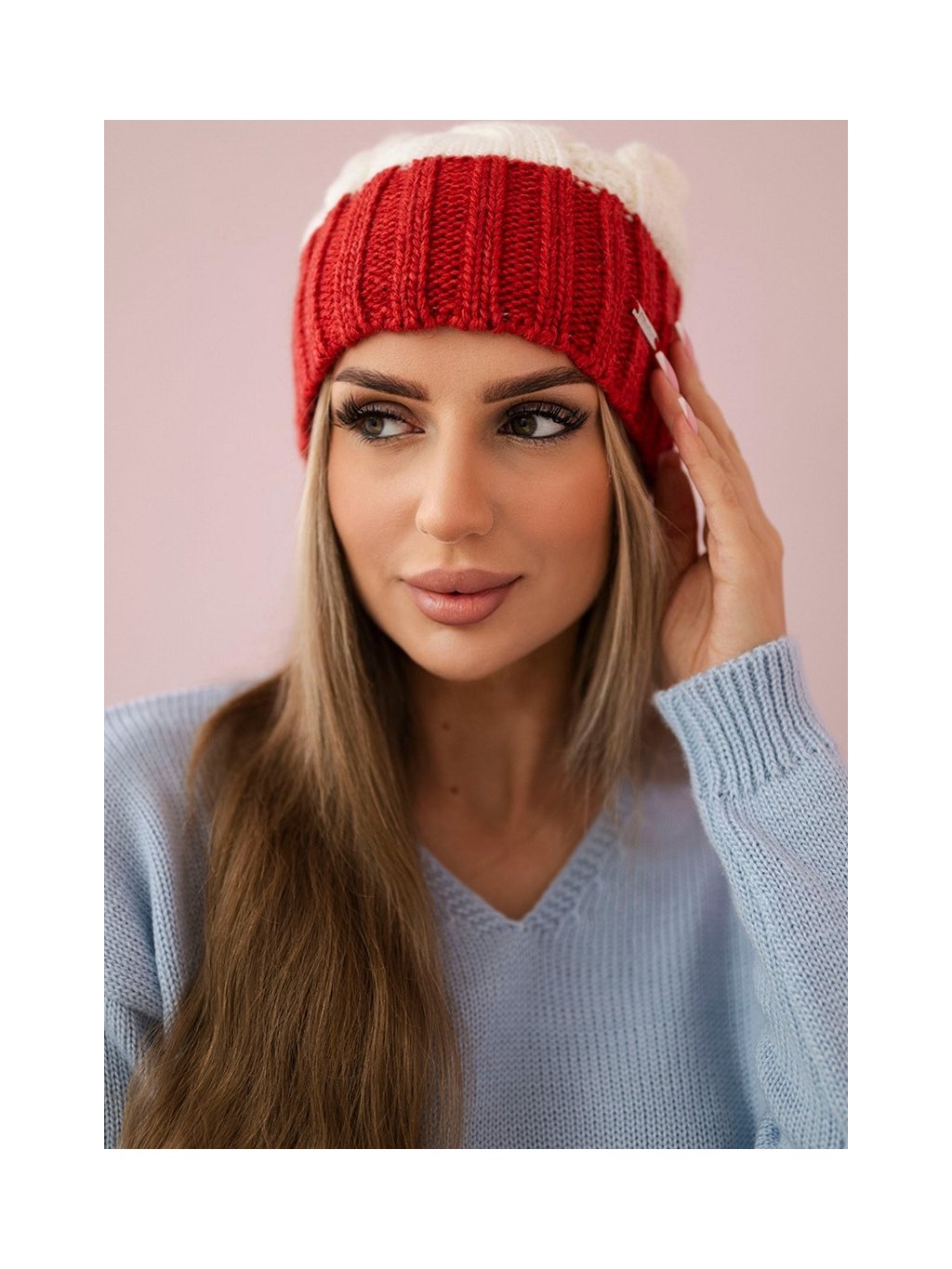 Bílo-červená dámská hřejivá zimní čepice