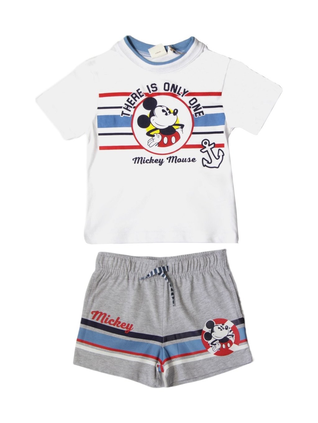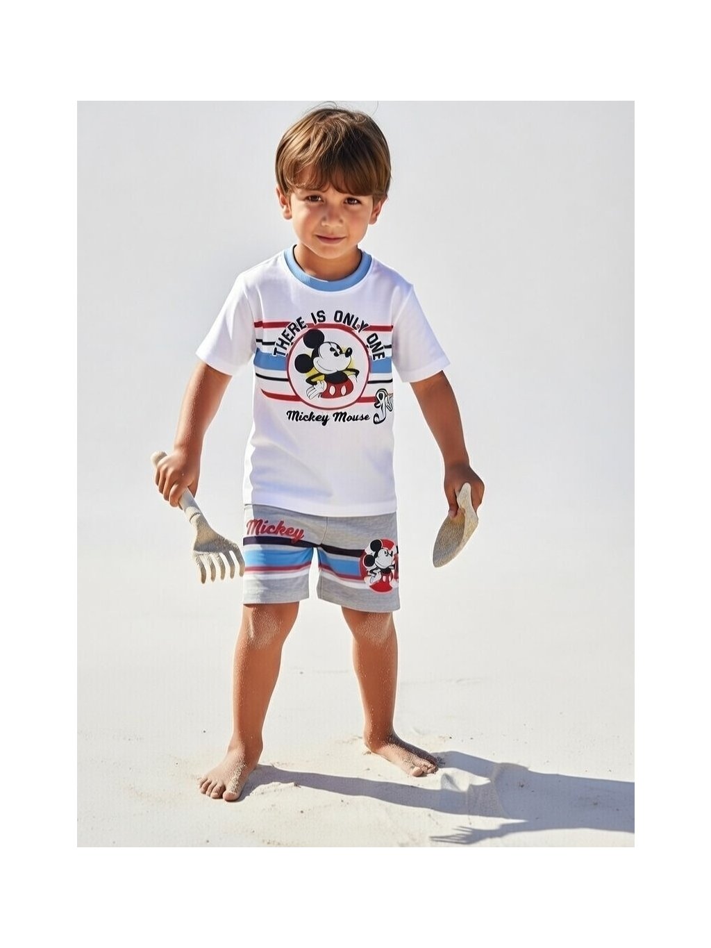 Bílo-šedý komplet trička a šortek Mickey Disney