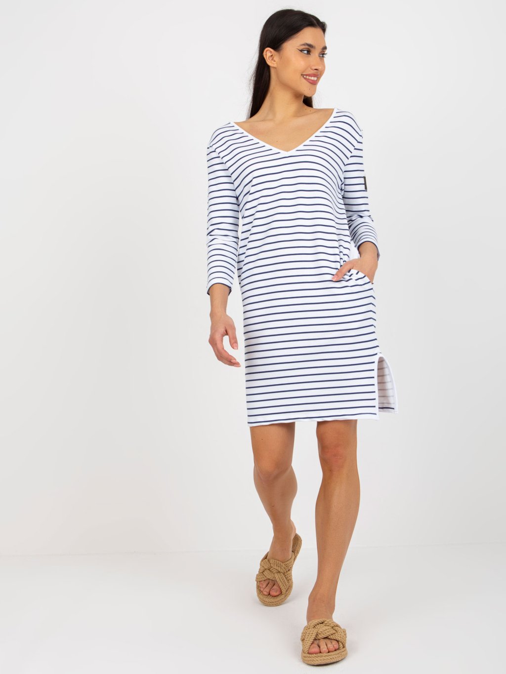 Bílo-tmavě modré pruhované šaty