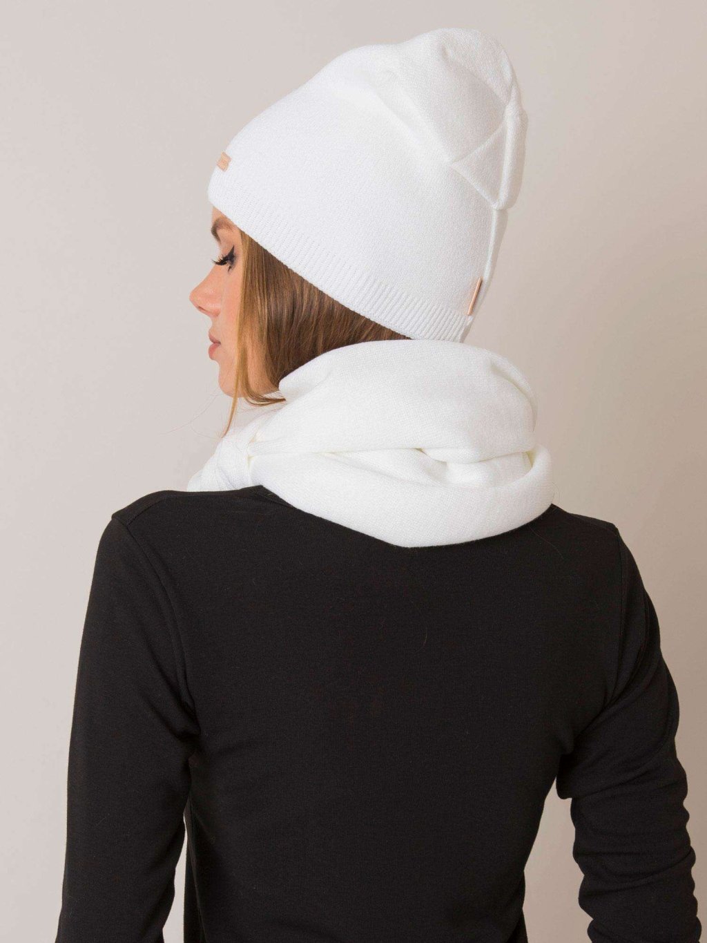 Bílý dámský komplet šály a čepice