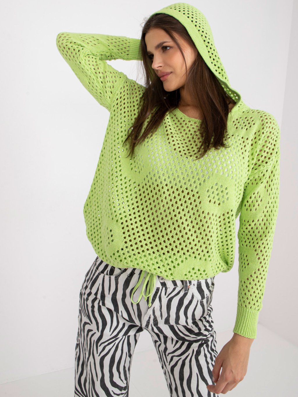 Světle zelený dámský svetr s kapucí