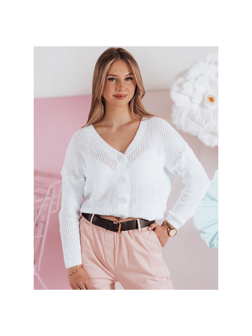 Bílý dámský svetr s knoflíky SWEETDREAM