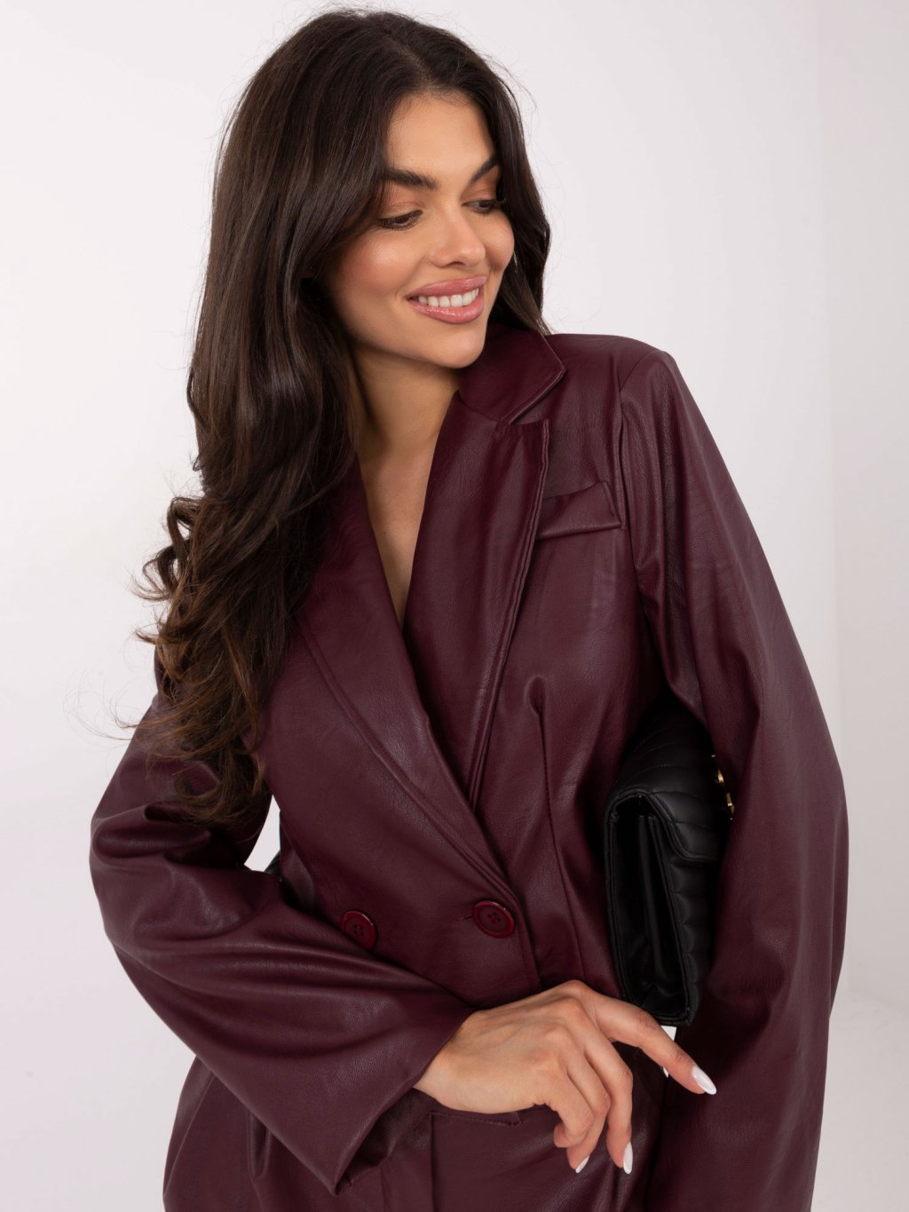 Bordové dámské koženkové sako