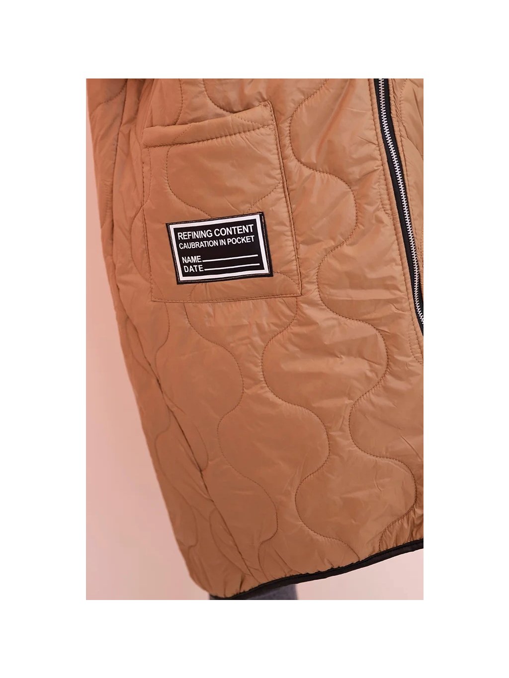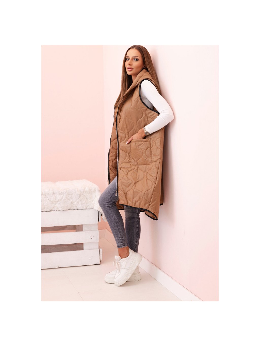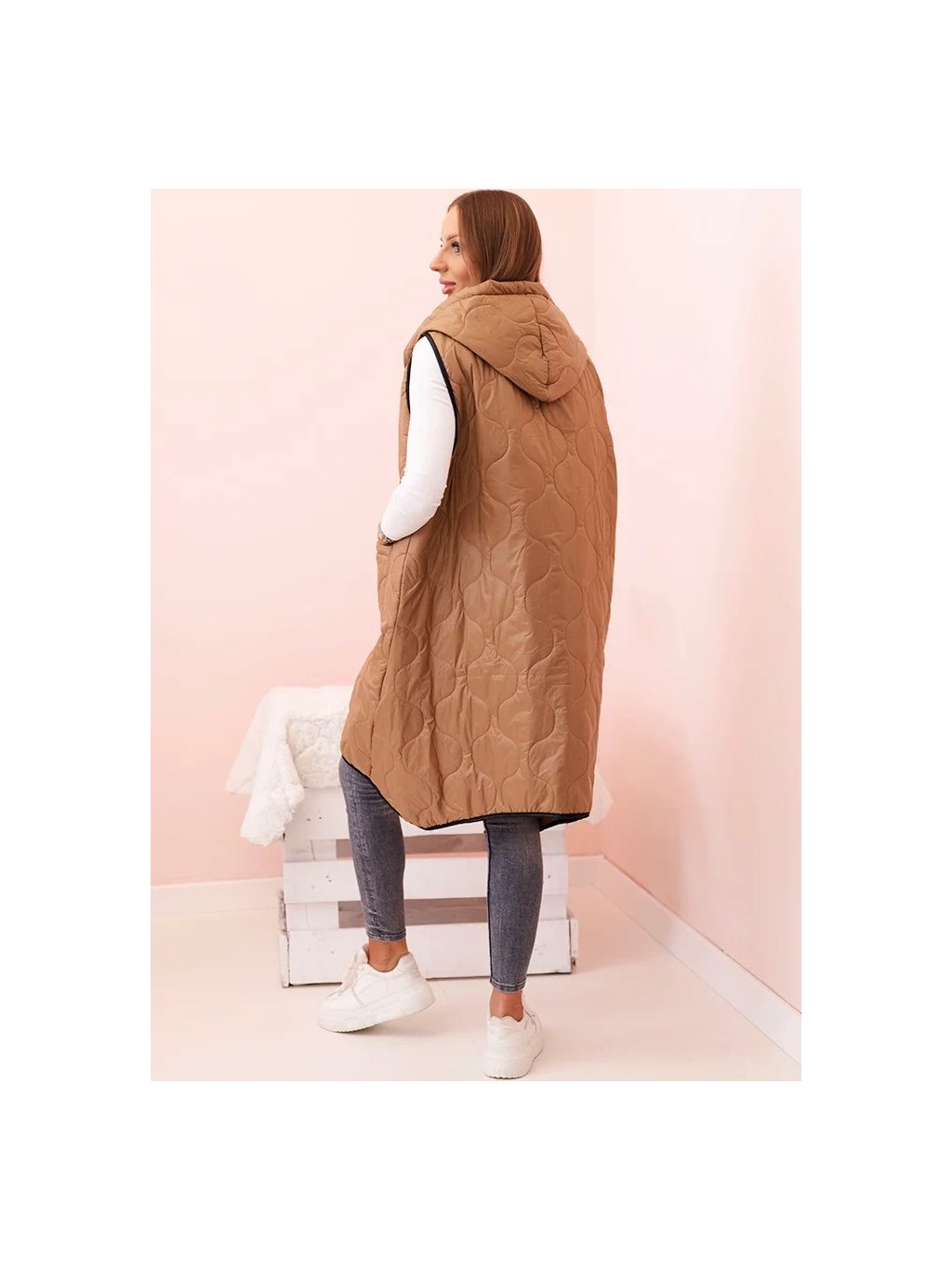 Camel dámská oversize prošívaná vesta s kapucí na zip