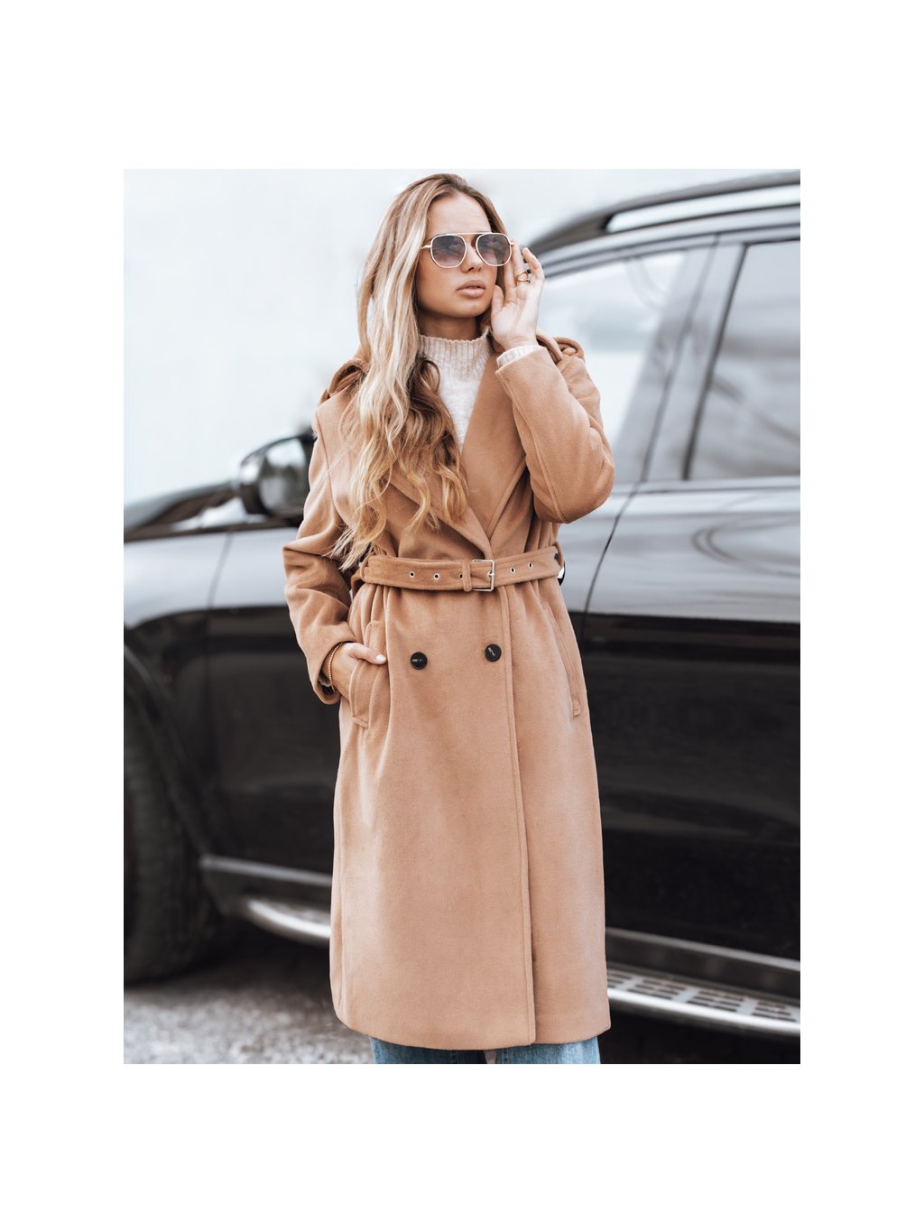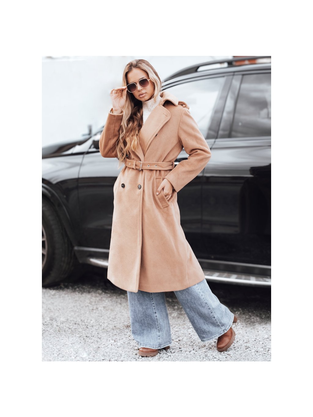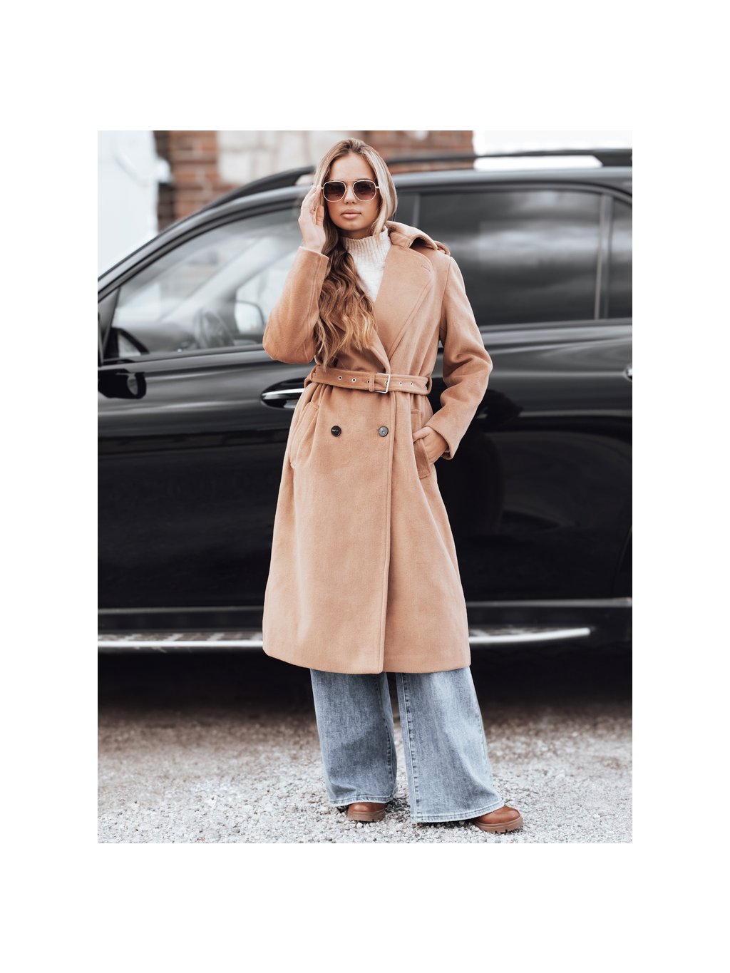 Camel dámský dlouhý kabát s páskem