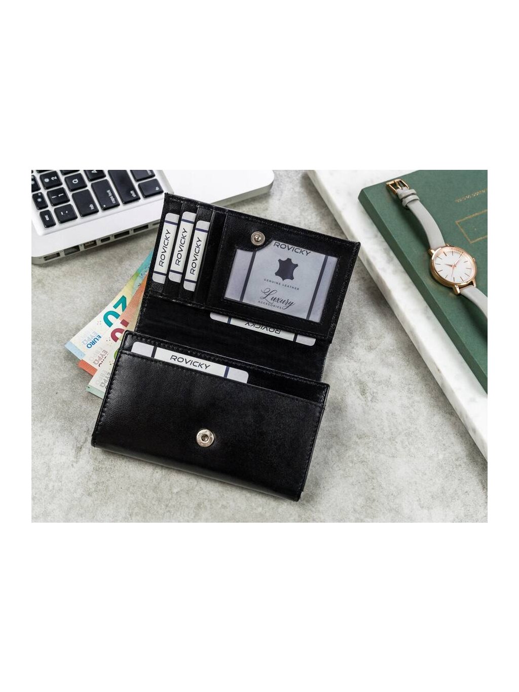 - 1 přihrádka ve střední části peněženky, uzavíratelná na zip
