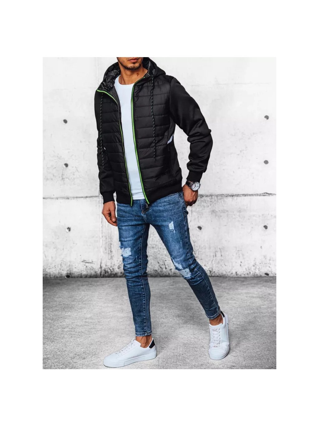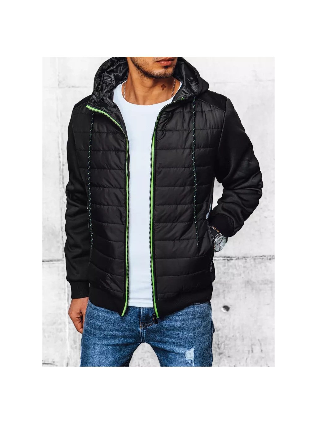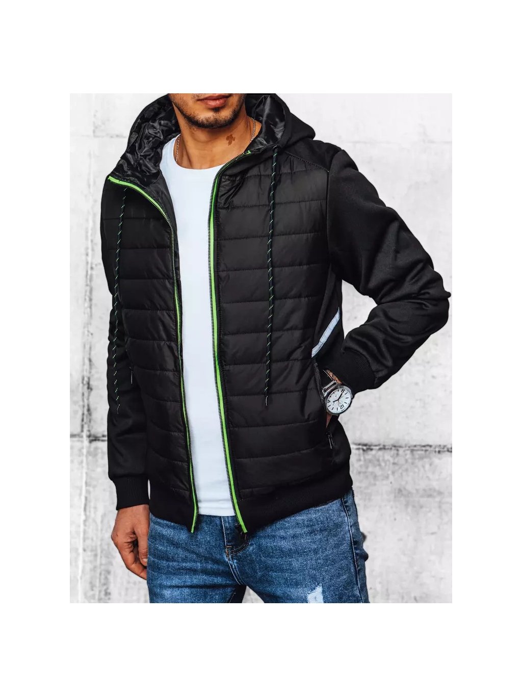 Pánská prošívaná přechodná bunda s kapucí: