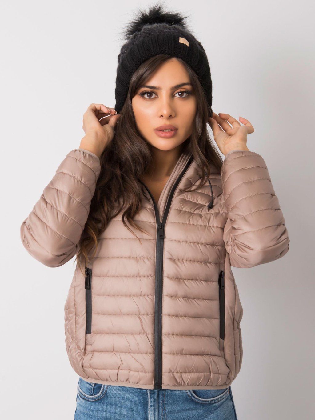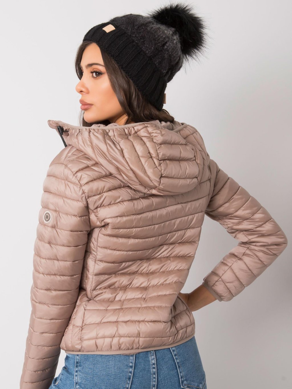 Černá čepice s chlupatou bambulí