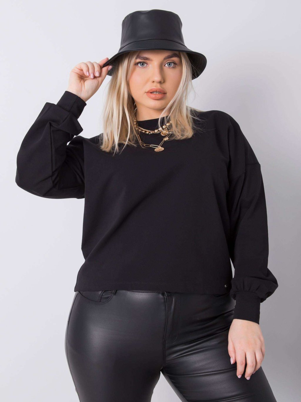 Modelka je oblečena do velikosti 2XL.