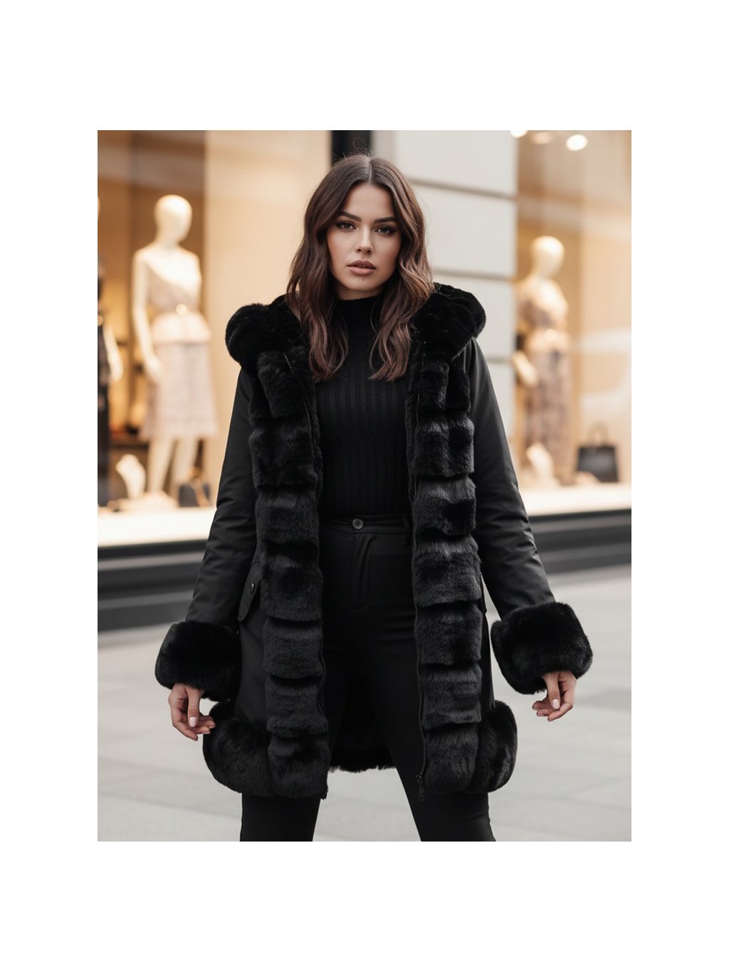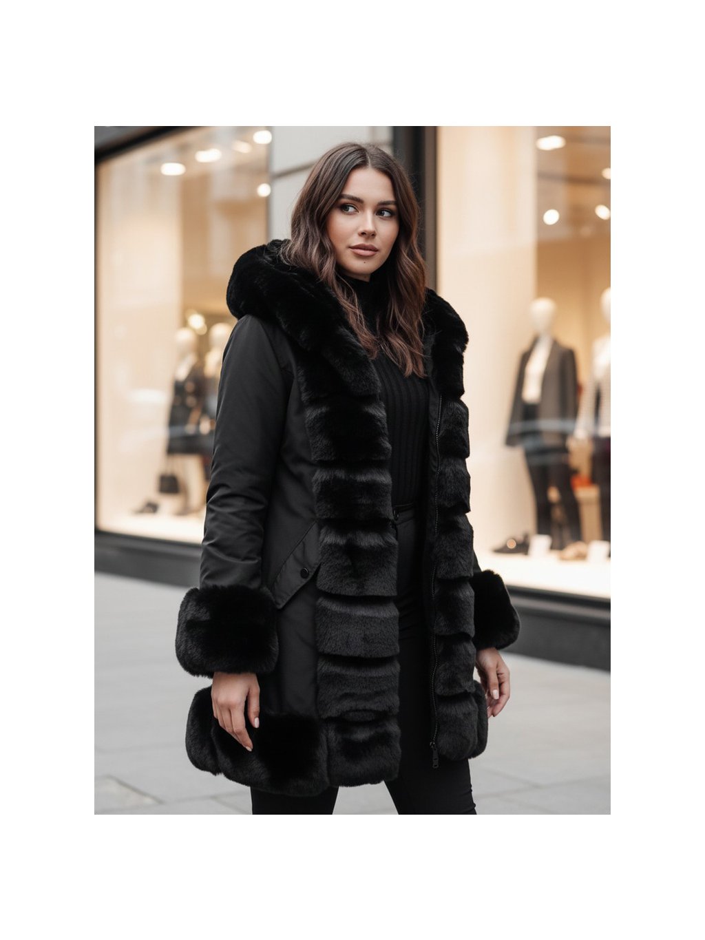 Černá dámská bunda s kožíškem FURRWINT