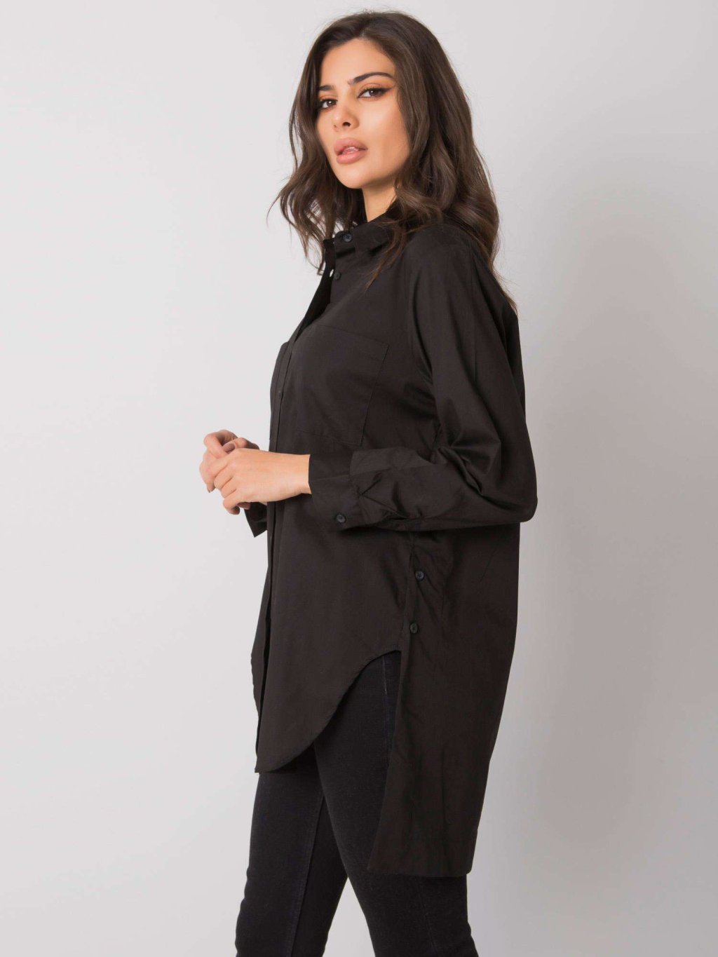 Modelka je oblečena do velikosti One size.