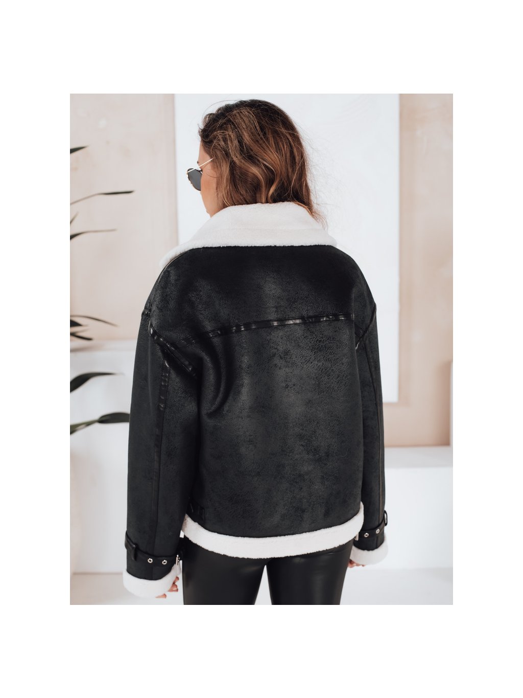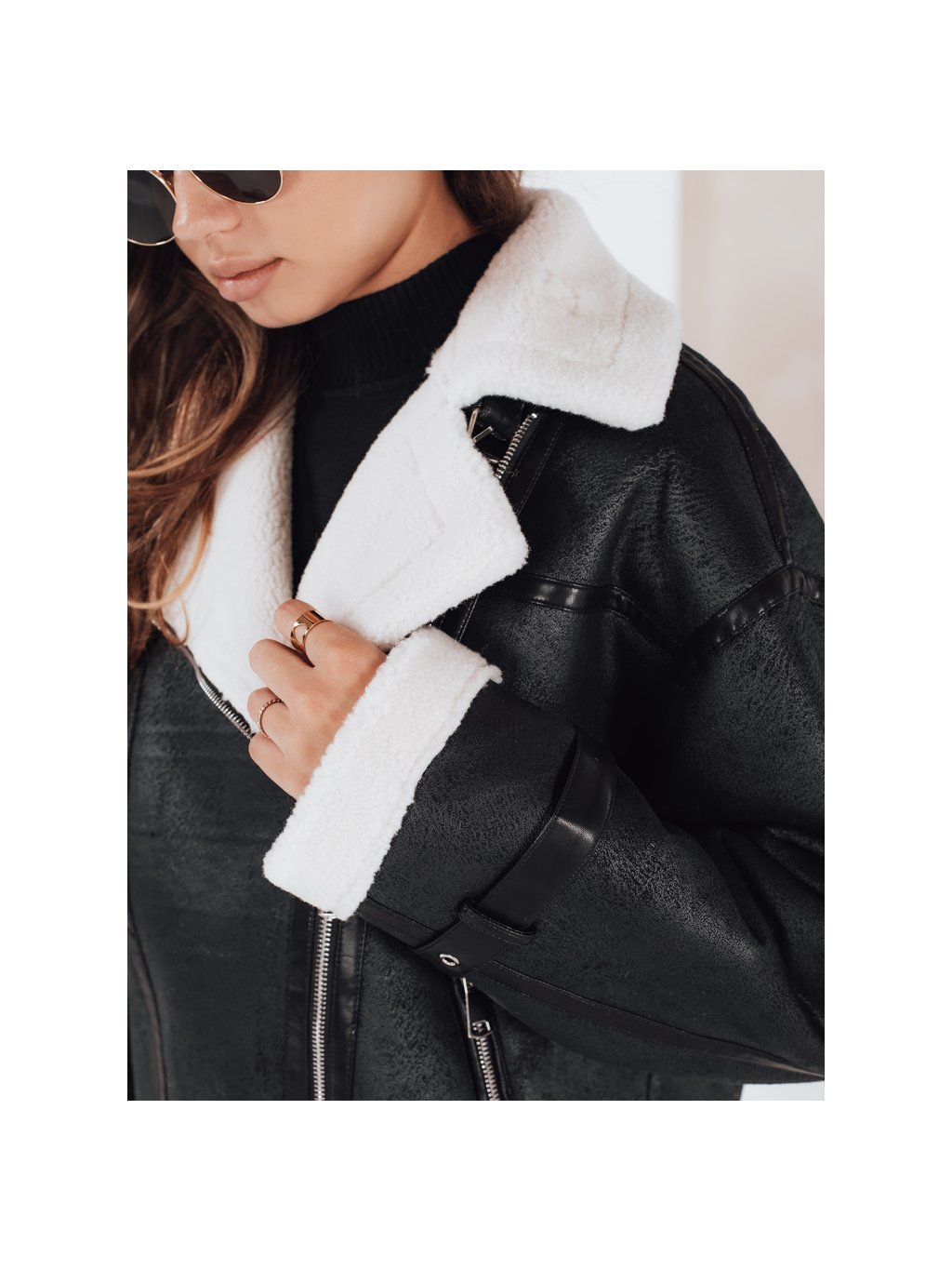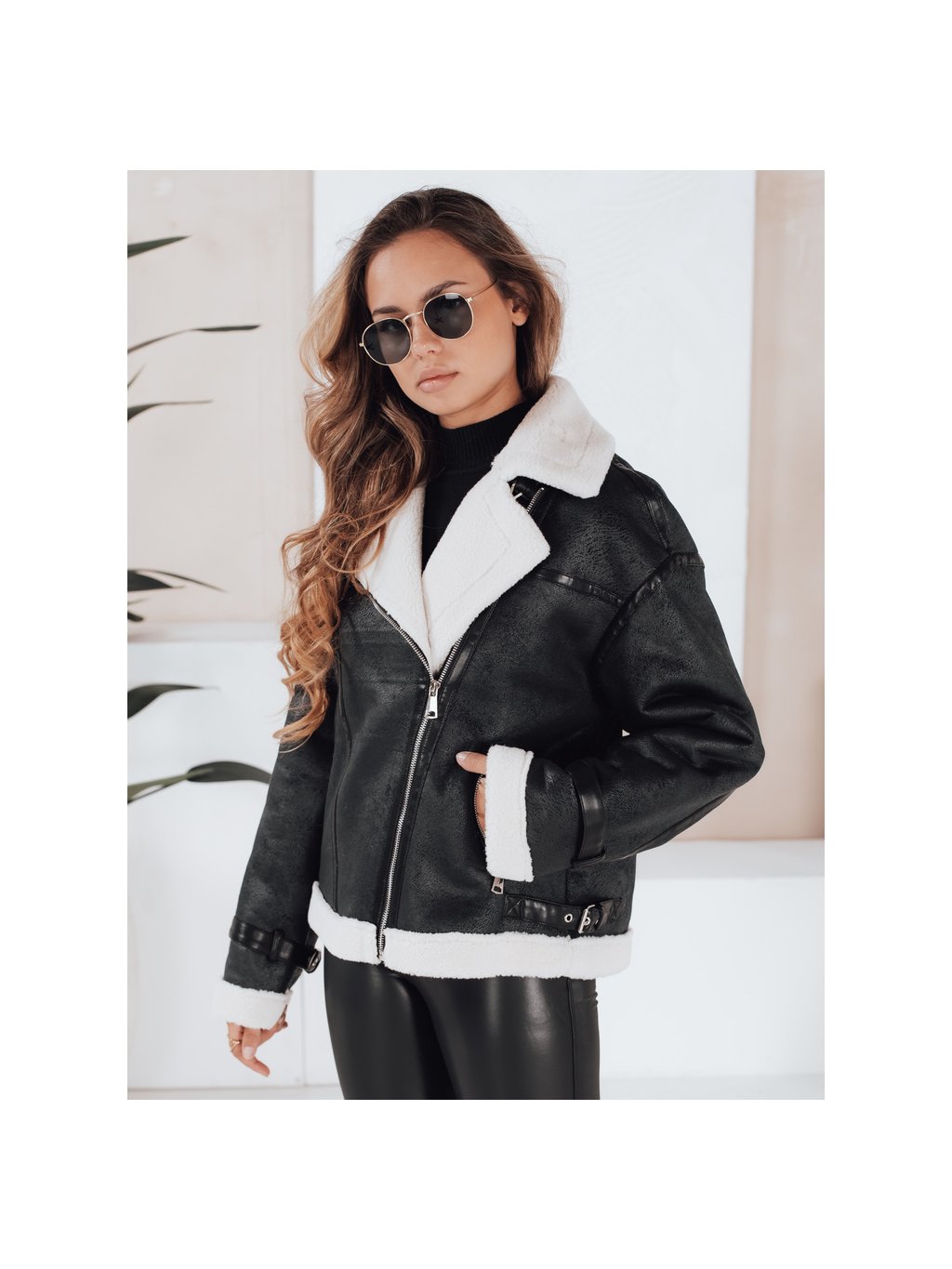Černá dámská koženková bunda s kožešinou