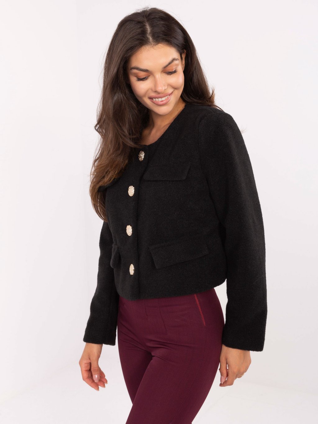 Modelka na obrázcích je vysoká 173 cm, obvod přes prsa má 85 cm, obvod pasu 62 cm a boky 95 cm.