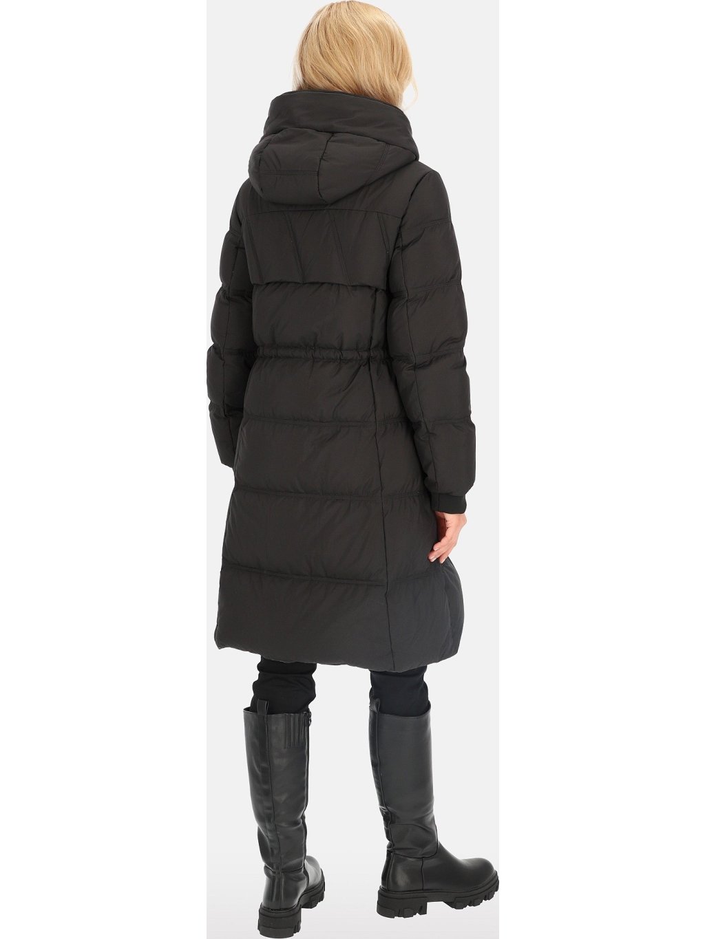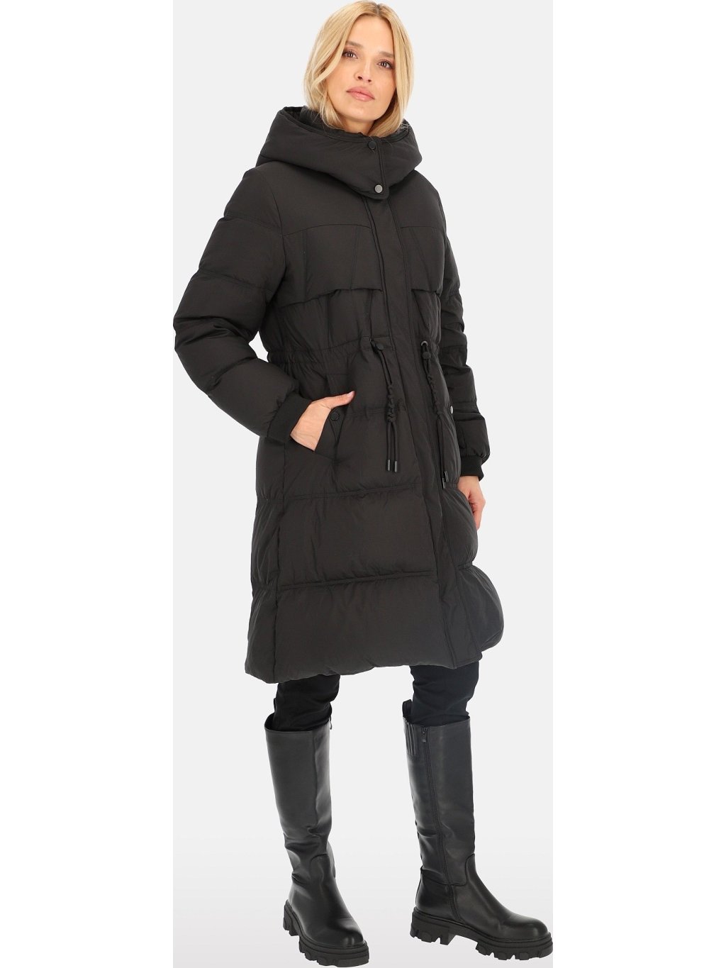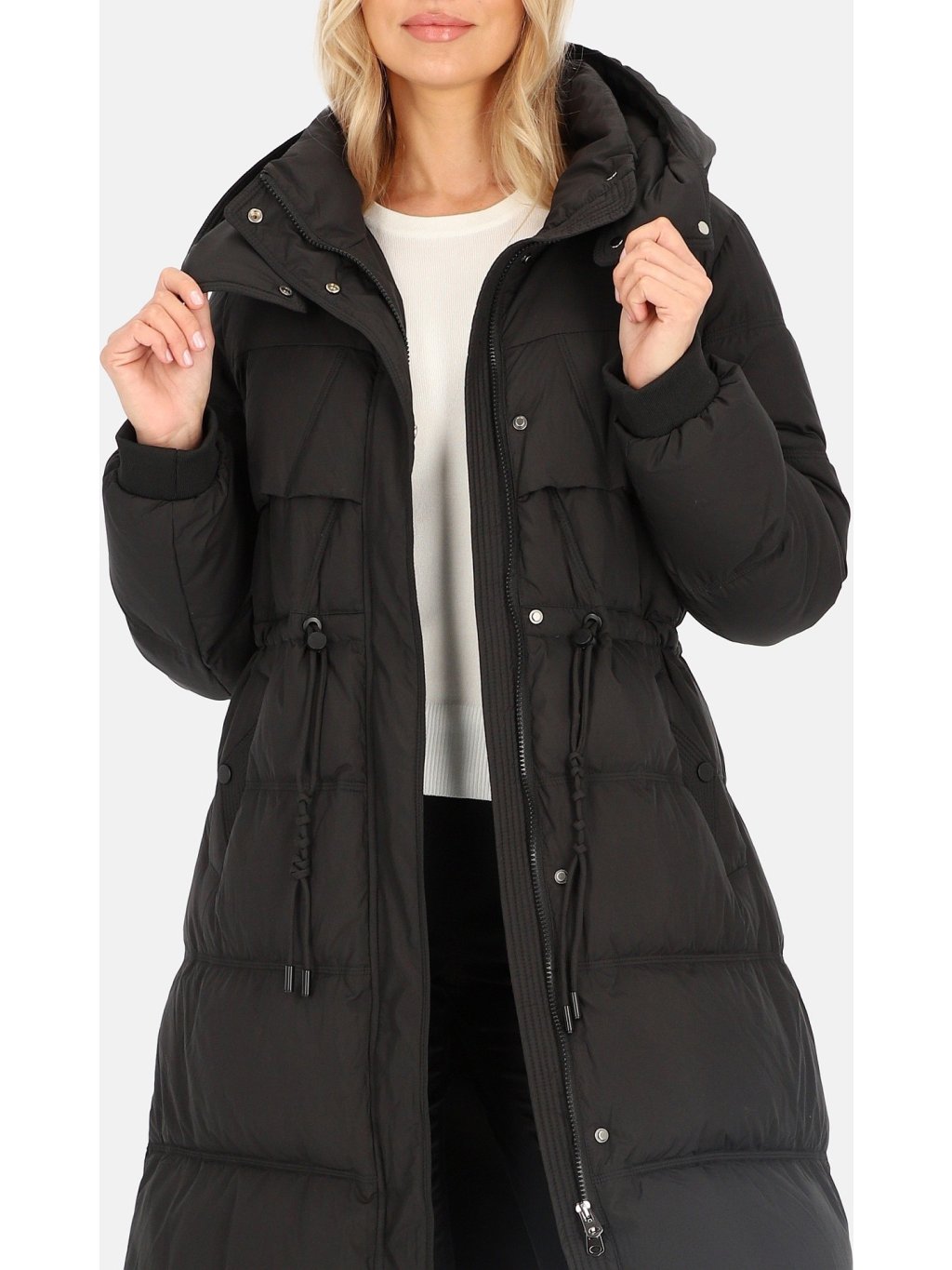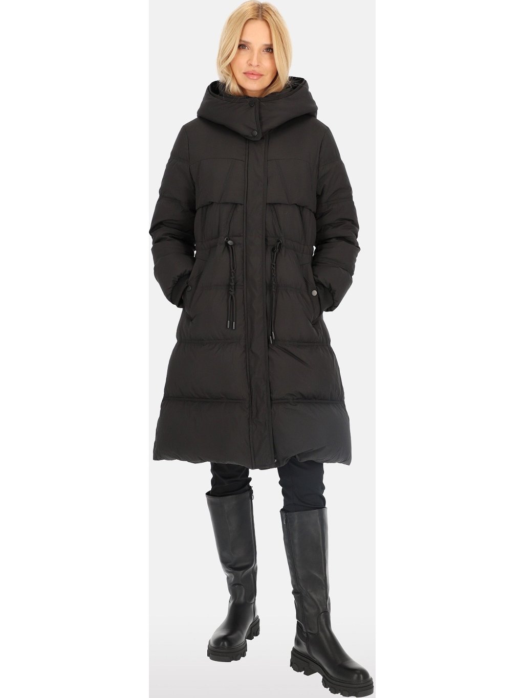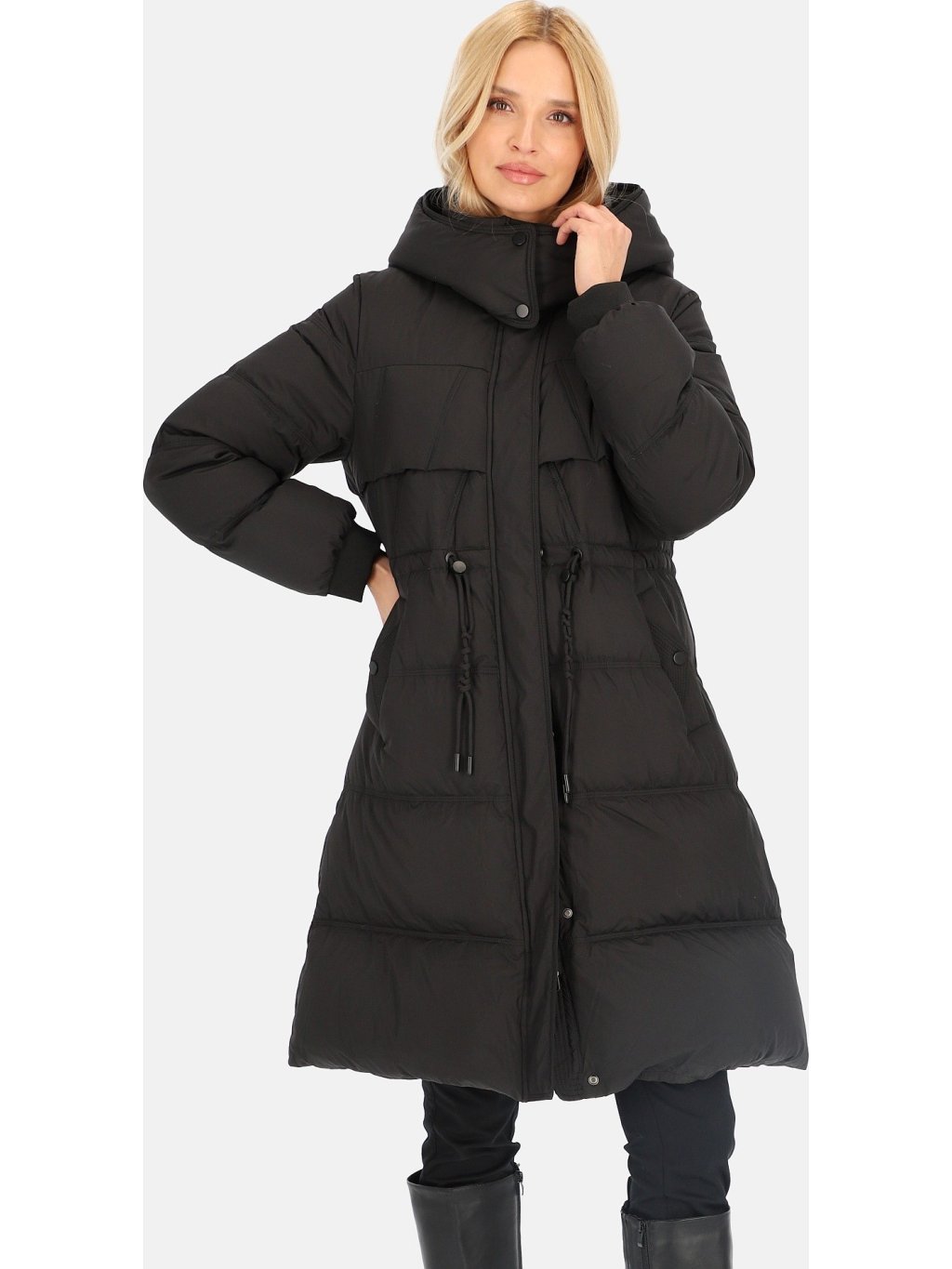 Černá dámská péřová bunda s ozdobnými stahovacími šňůrkami