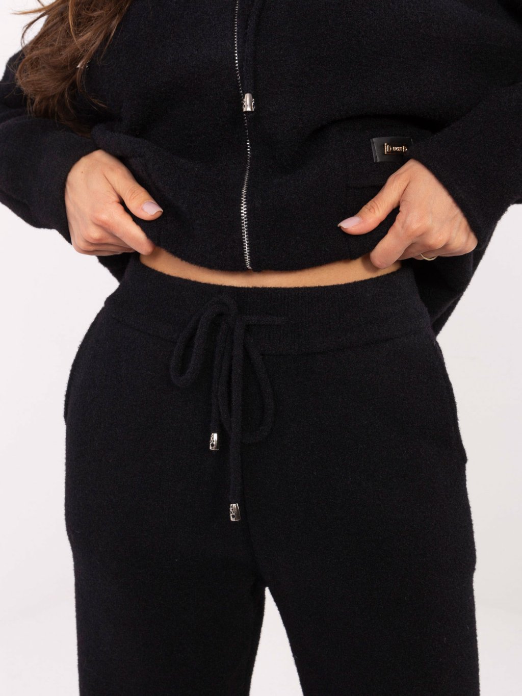 Modelka na obrázcích je vysoká 173 cm, obvod přes prsa 85 cm, obvod pasu 62 cm a boky 95 cm.
