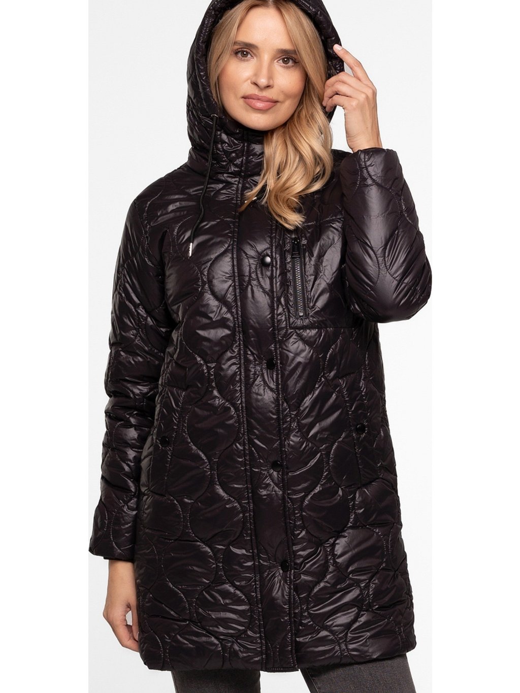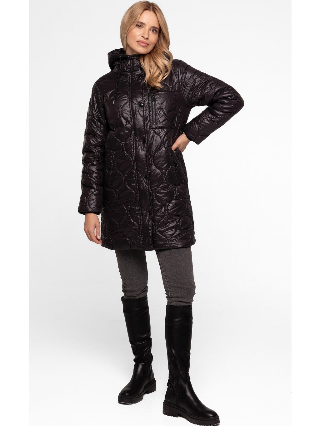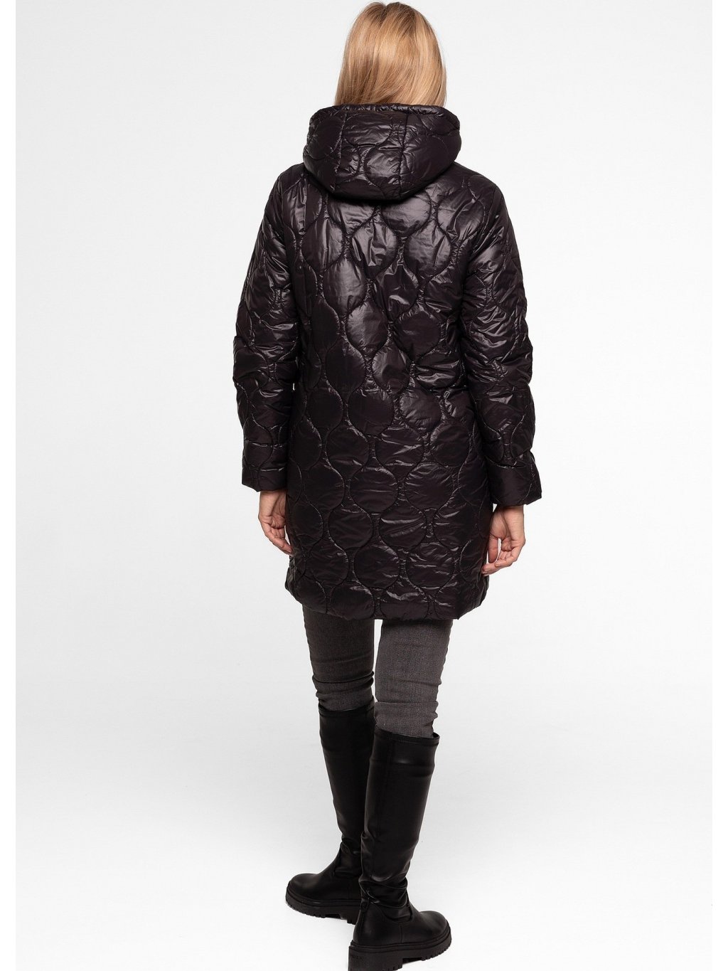 Černá dámská prošívaná přechodová bunda s kapucí